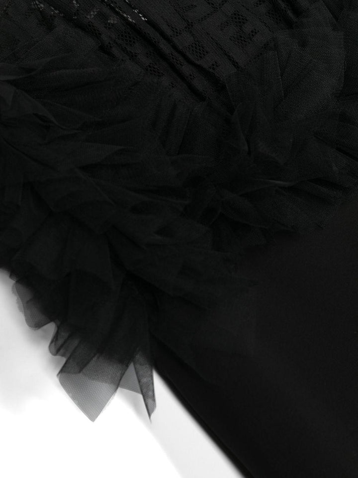 Abito nero in cotone per bambina con dettagli in tulle sulle manice di Fendi Kids.