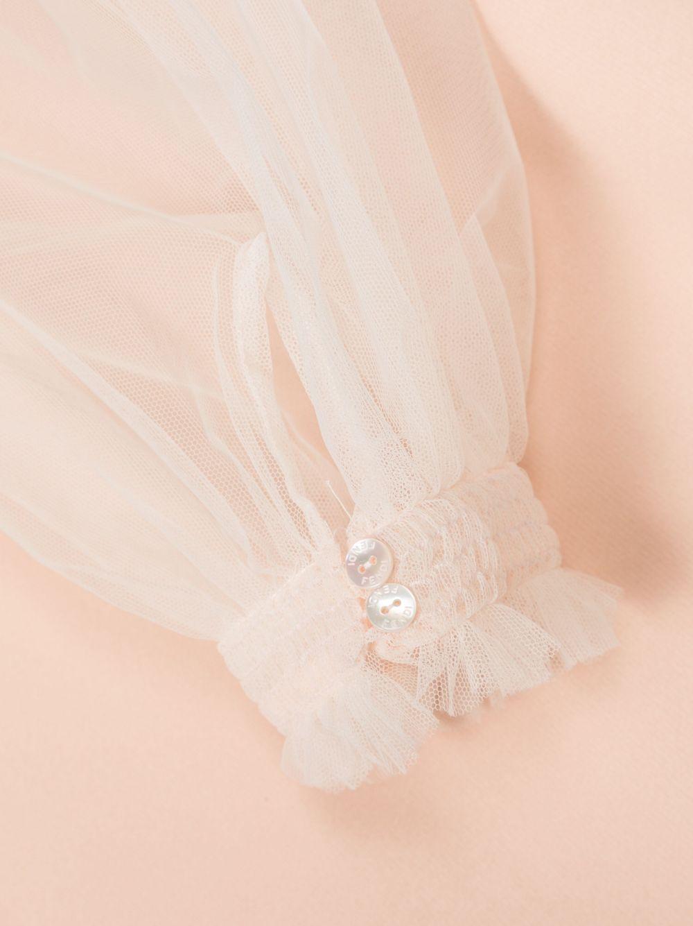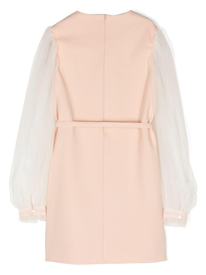 Abito rosa in tessuto tecnico per bambina con maniche lunghe in tulle di Fendi Kids.