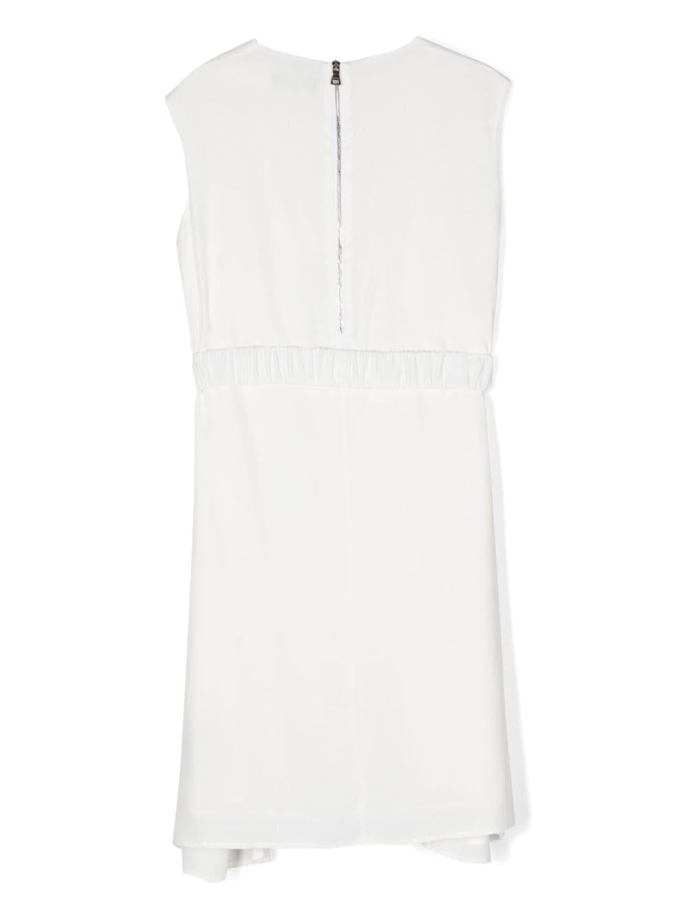 Abito bianco in crêpe per bambina con logo colore oro sul davanti di Balmain Kids.