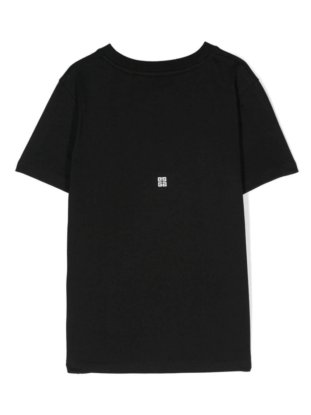 T-shirt nera in jersey di cotone per bambini con stampa logo sul davanti di Givenchy Kids.