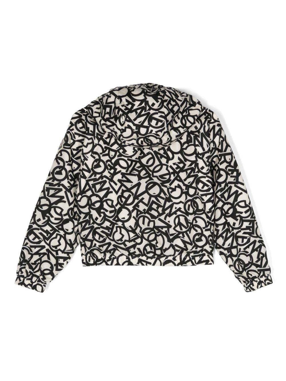 Giubbotto bianco e nero per bambina con stampa logo all-over della collezione Moncler Enfant,