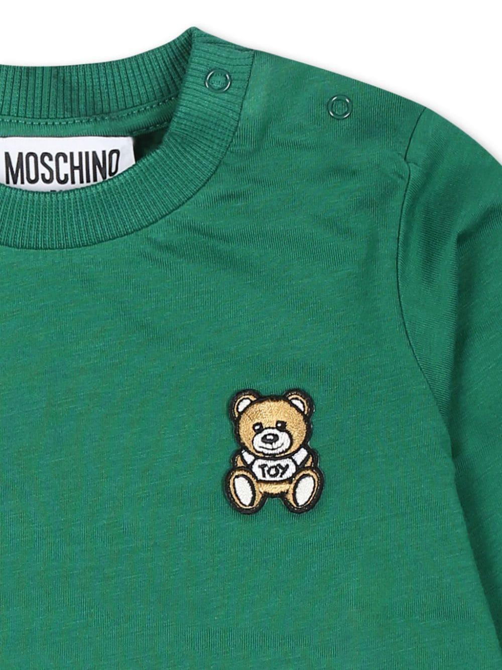 T-shirt in jersey di cotone verde foresta per neonato di Moschino Kids.