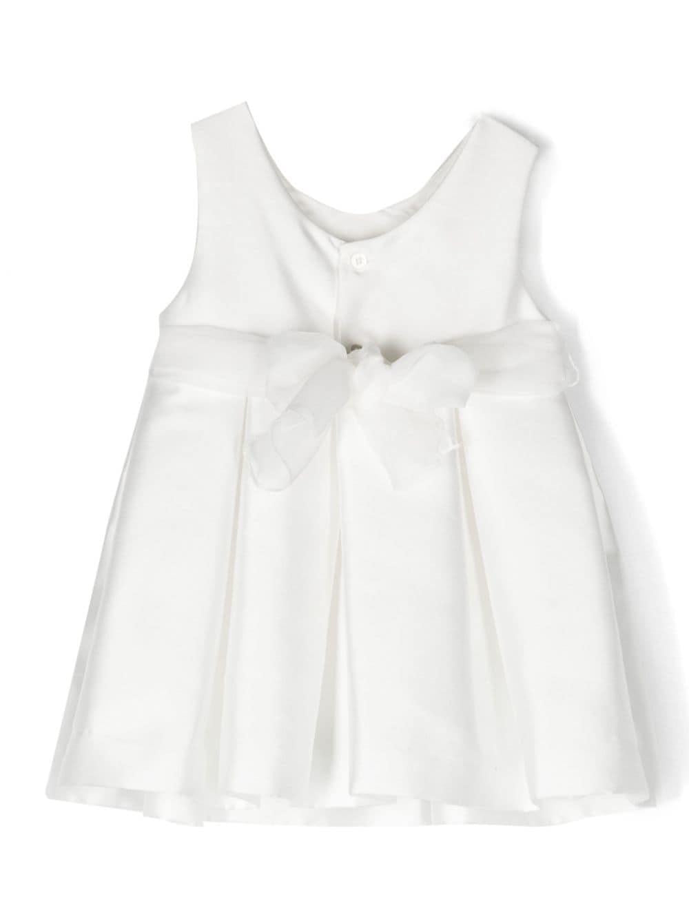 Abito bianco in misto cotone con finitura satinata per neonata di Abel & Lula.