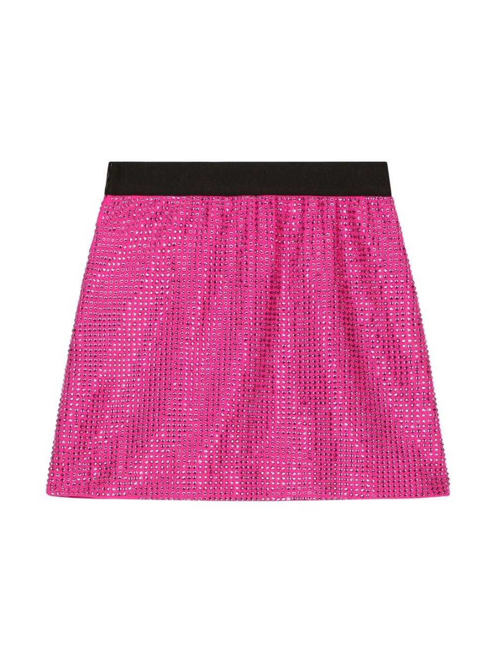 Gonna rosa shocking a trapezio per bambina decorata con strass di DOLCE & GABBANA KIDS.
