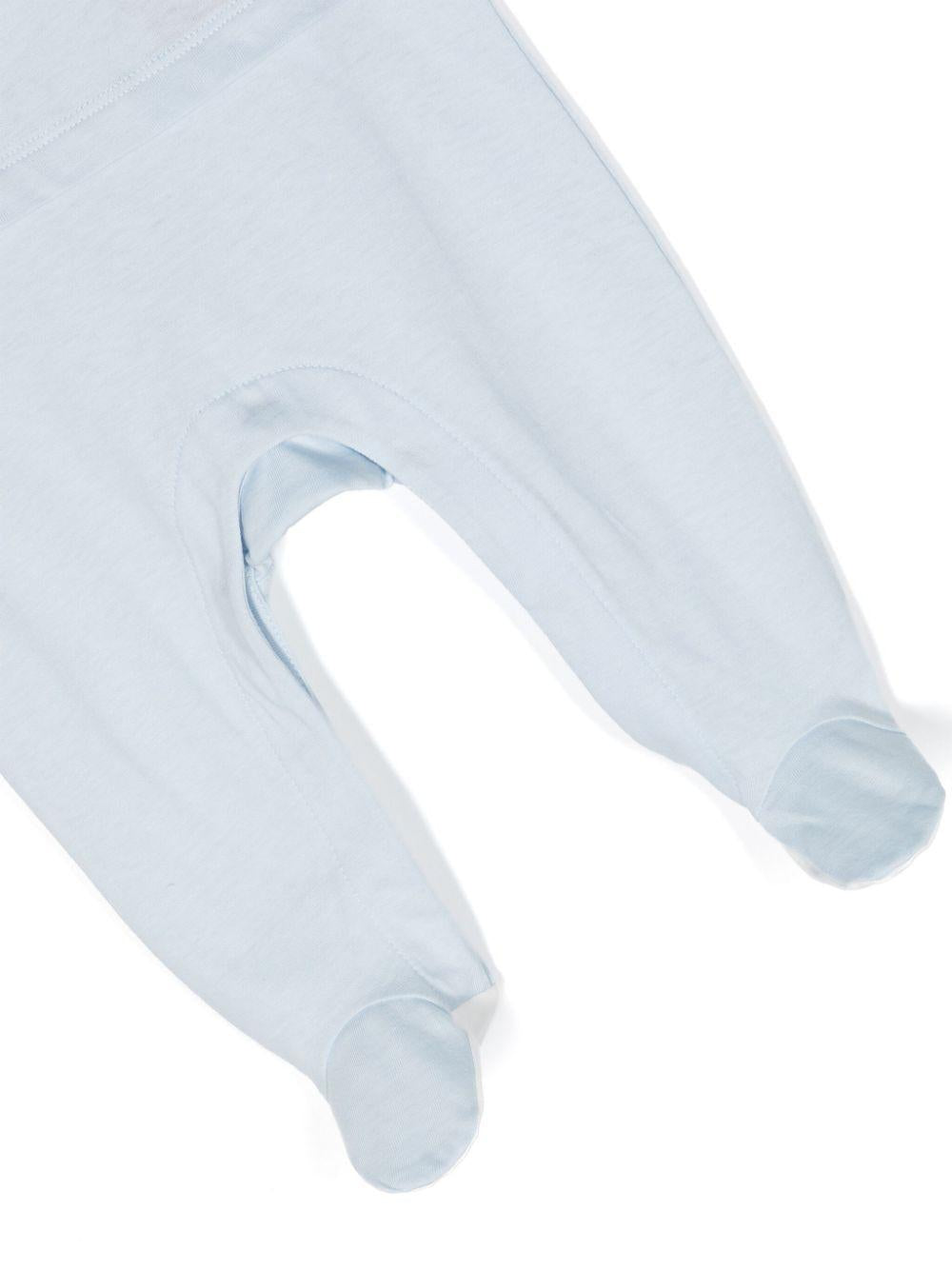 Set di tre pezzi azzurro in morbido jersey di cotone per neonato con toppa con logo sul davanti di Dolce & Gabbana Kids.