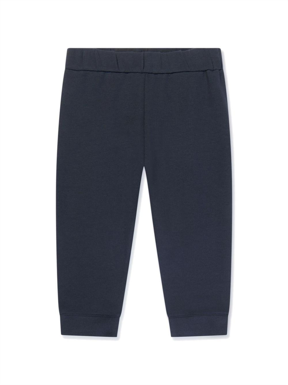 Completi sportivo blu navy in cotone per neonato con logo applicato e stampato sul petto di Moncler Enfant.