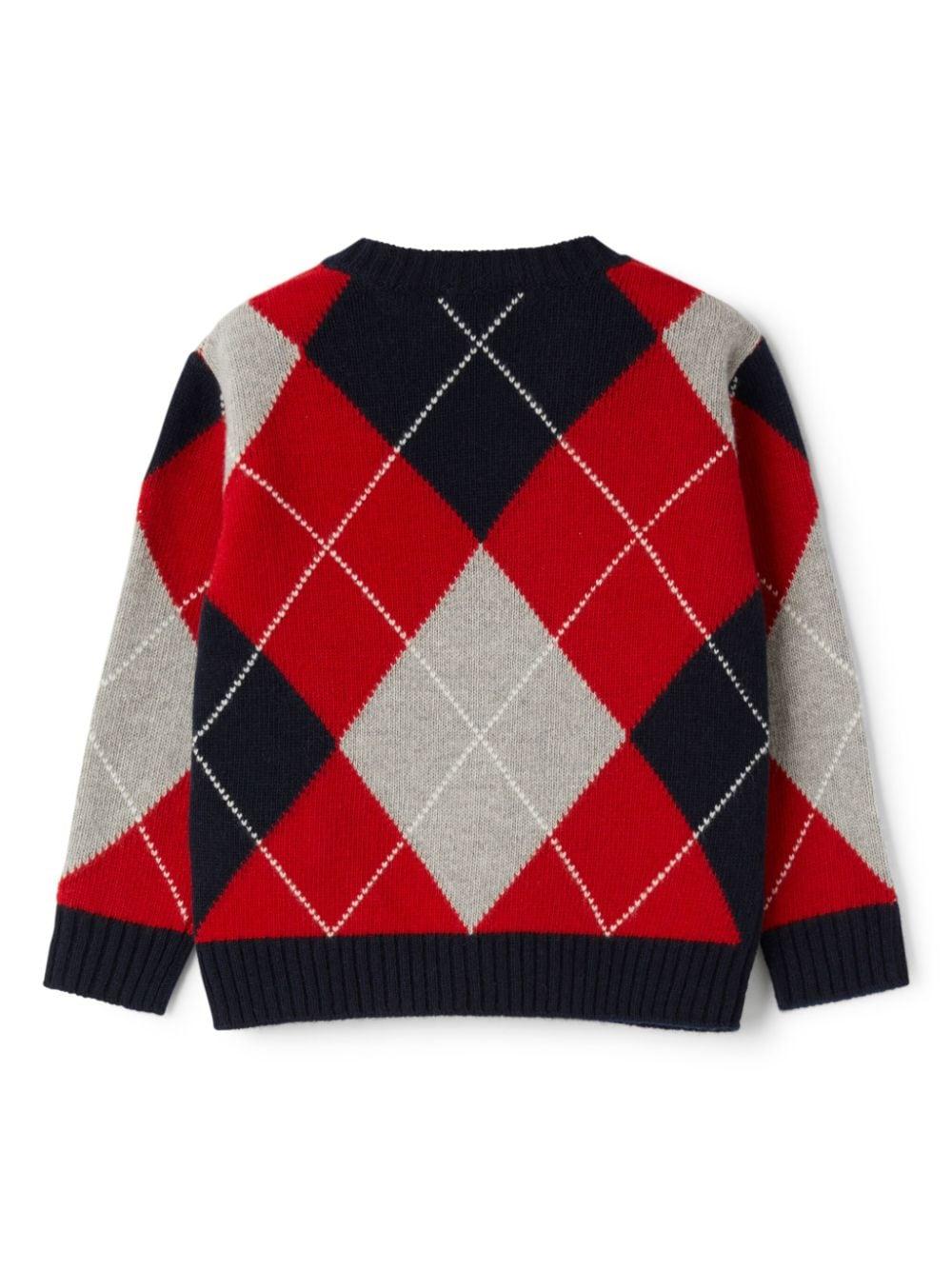 Maglione in maglia di lana vergine rossa multicolore per bambino di Il Gufo.