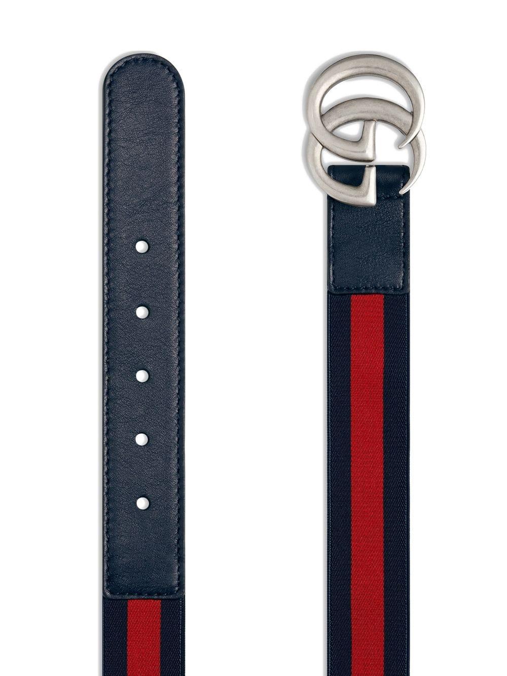 Cintura web elastico blu e rosso per bambini con dettagli in pelle blu e fibbia GG argento di Gucci Kids: