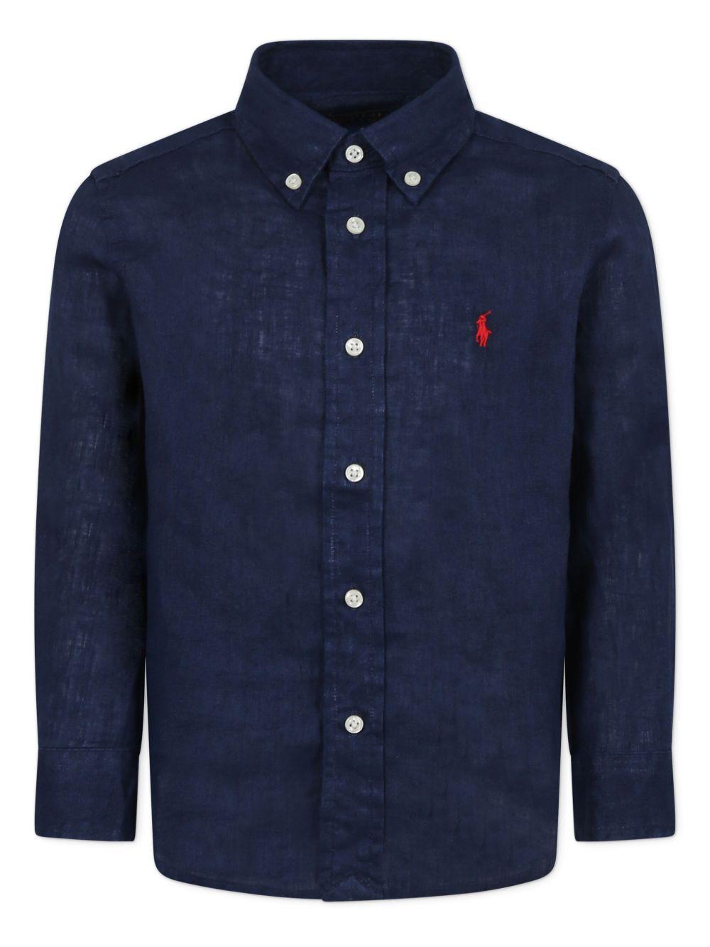 Camicia in lino blu navy per bambino di Ralph Lauren Kids.