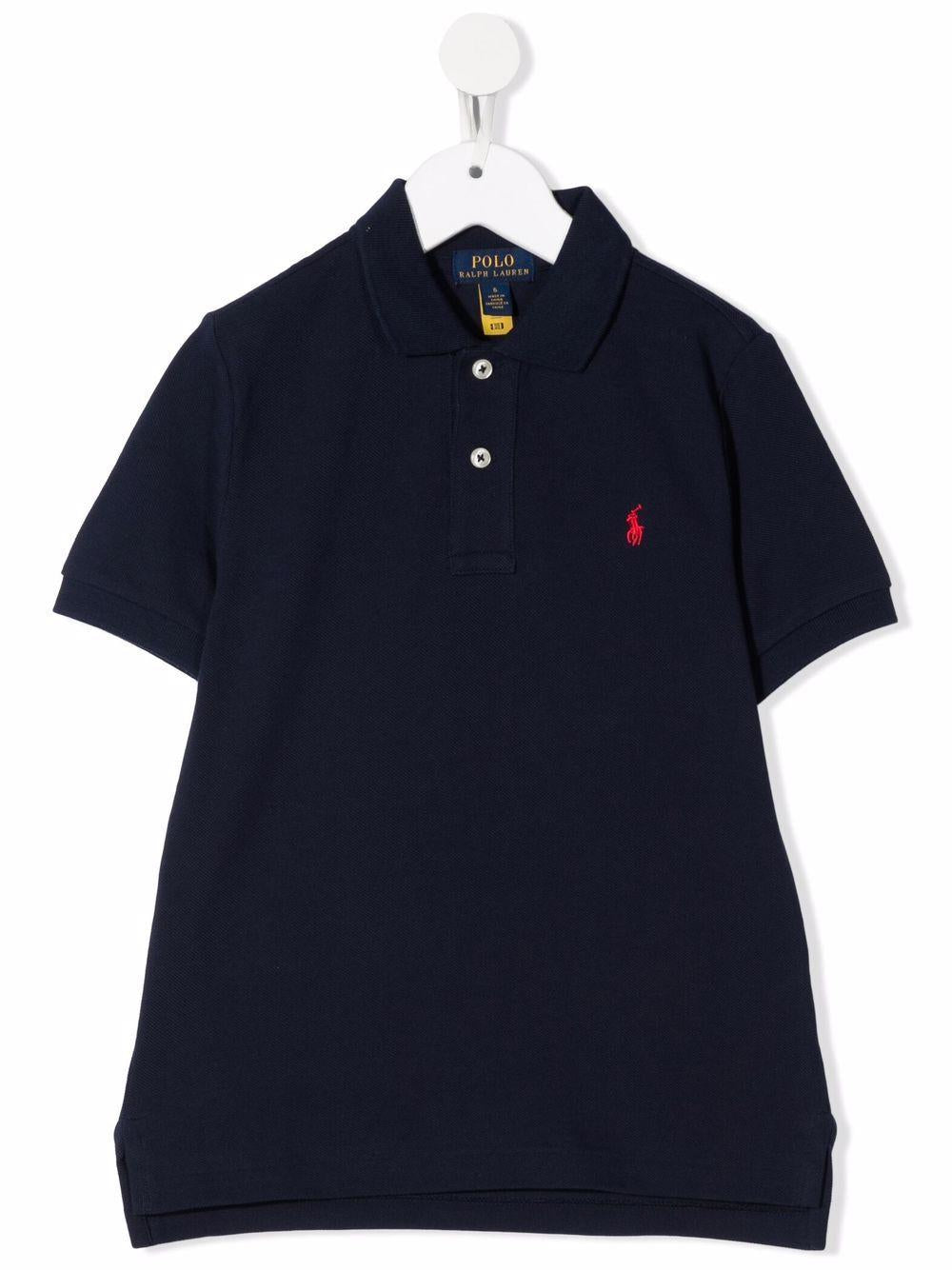 Polo blu in cotone per bambino con logo ricamato sul petto di RALPH LAUREN KIDS.