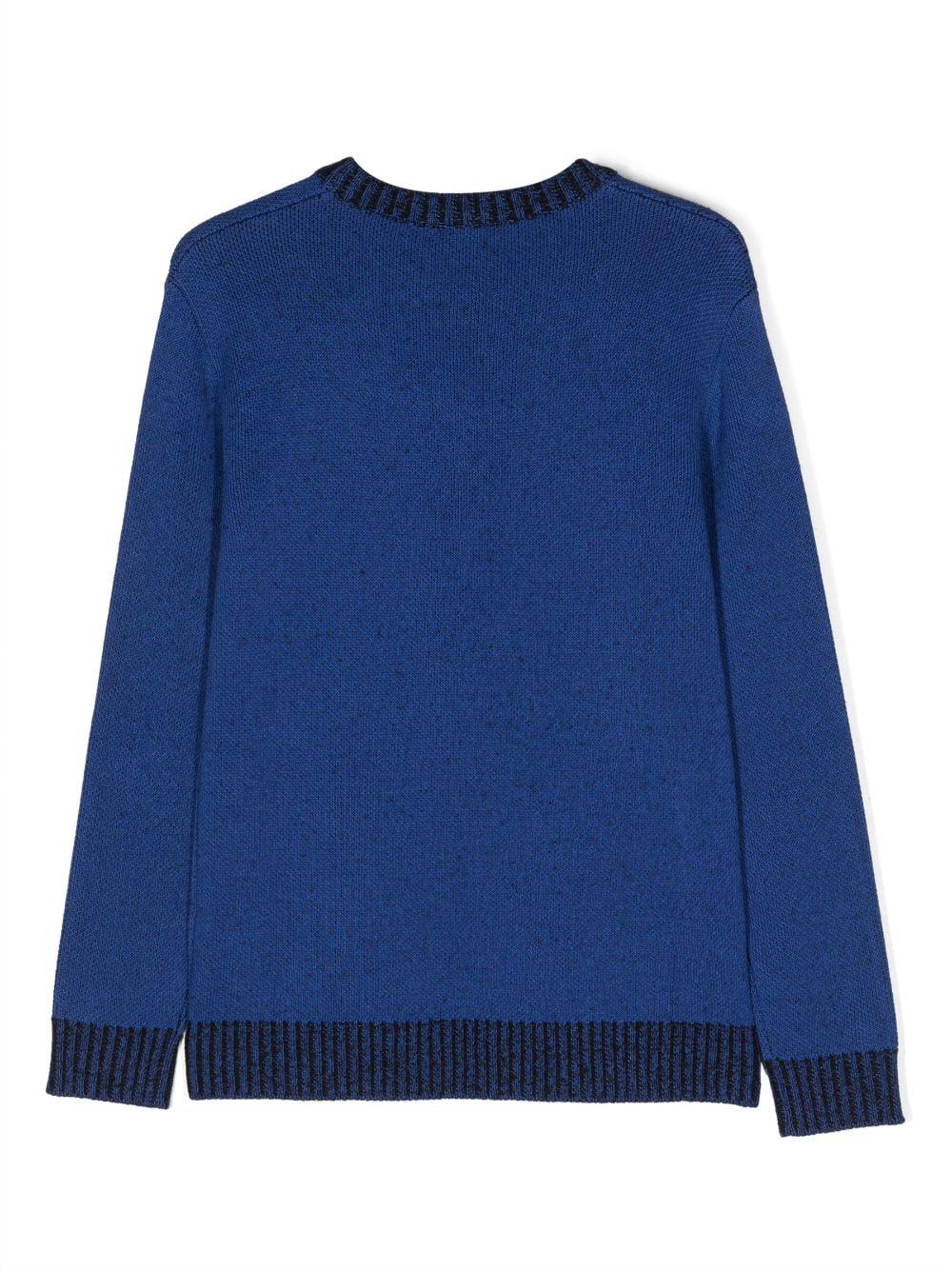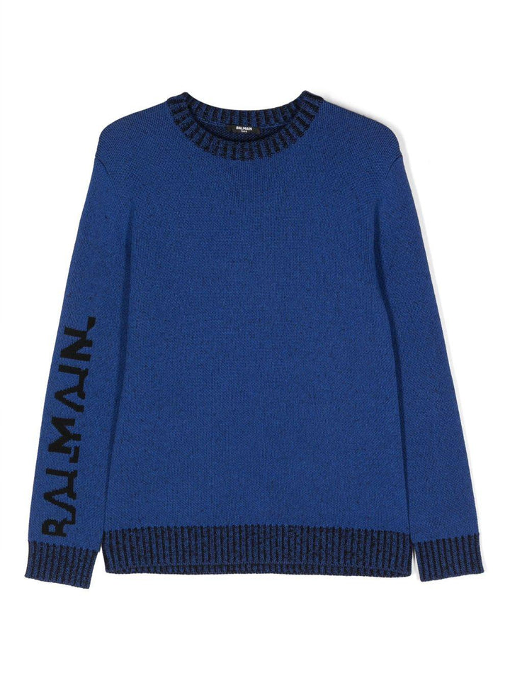 Ocean blue sweater for boys with black intarsia logo by Balmain Kids.