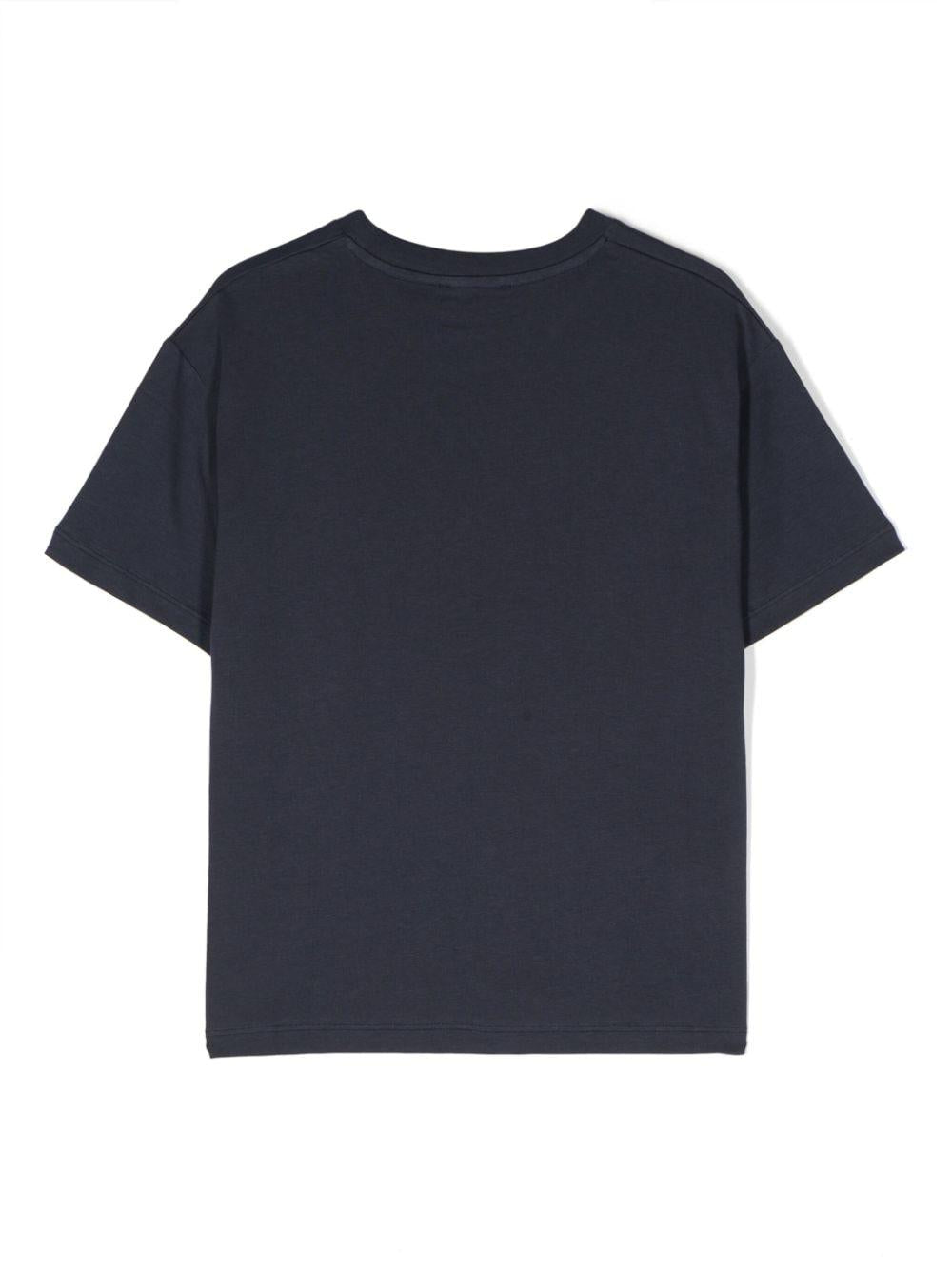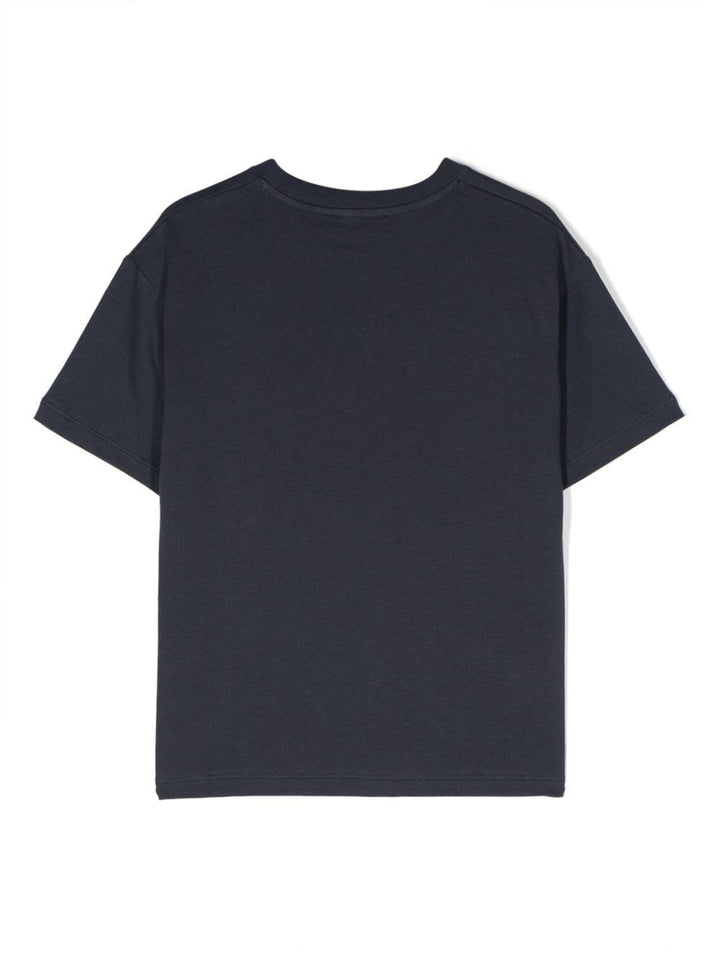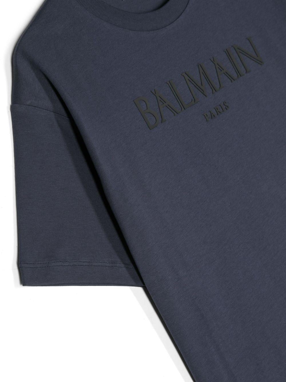 Blue cotton t-shirt for boys with black logo print on the chest by Balmain Kids.