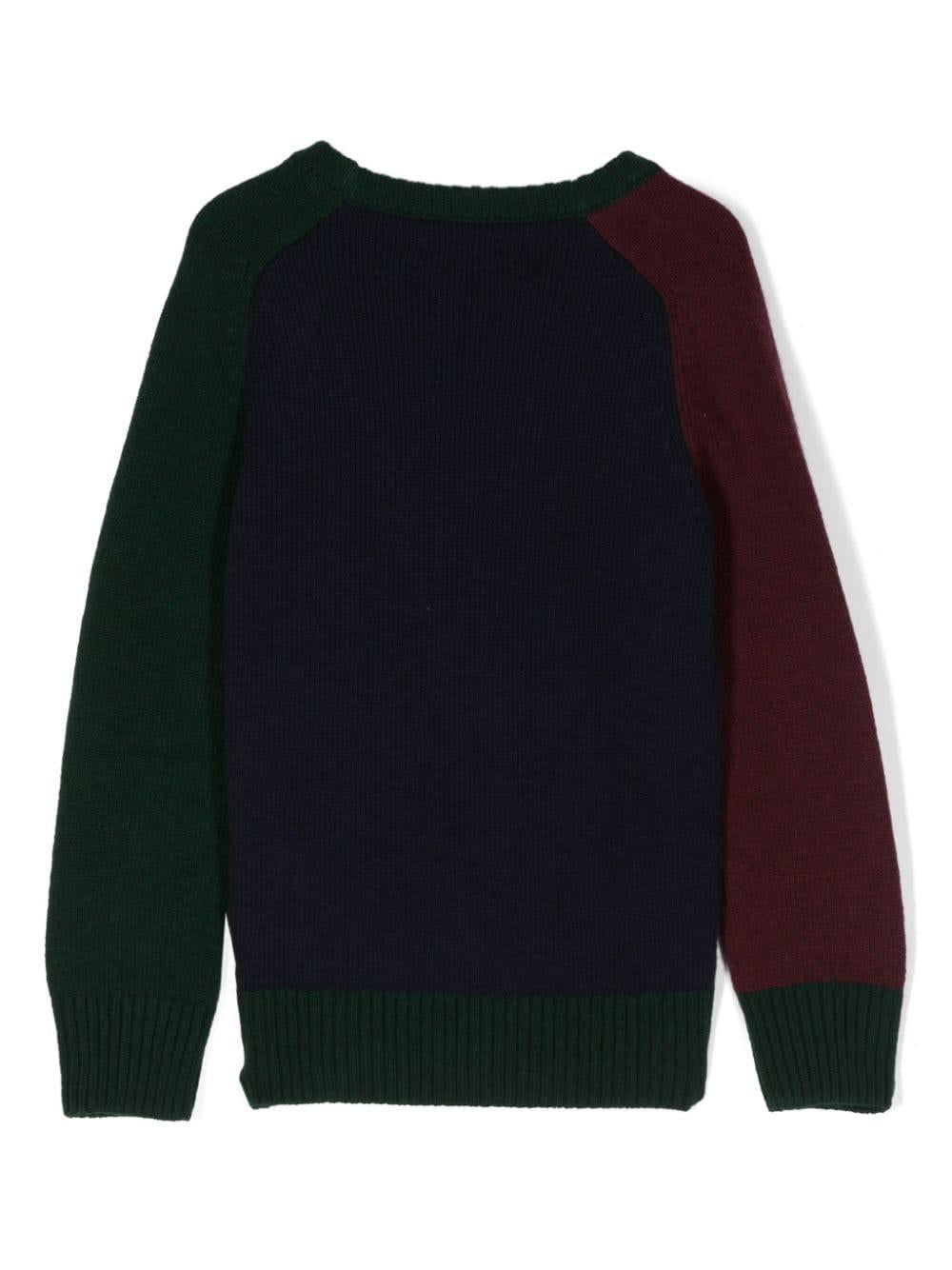 Blue crew-neck sweater for boys with Polo Pony embroidered logo on the front by RALPH LAUREN KIDS in wool blend.