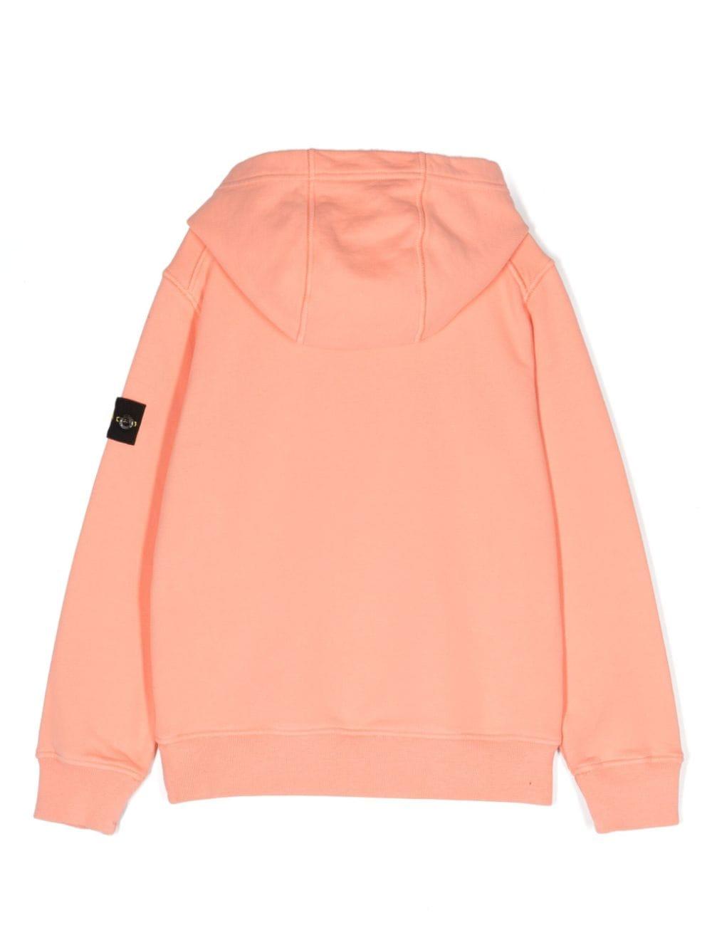 Salmon pink hooded sweatshirt for boys in cotton with compass motif by Stone Island Junior.