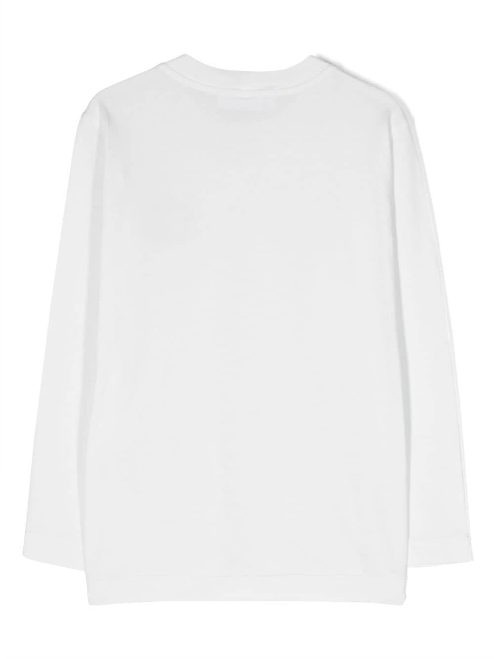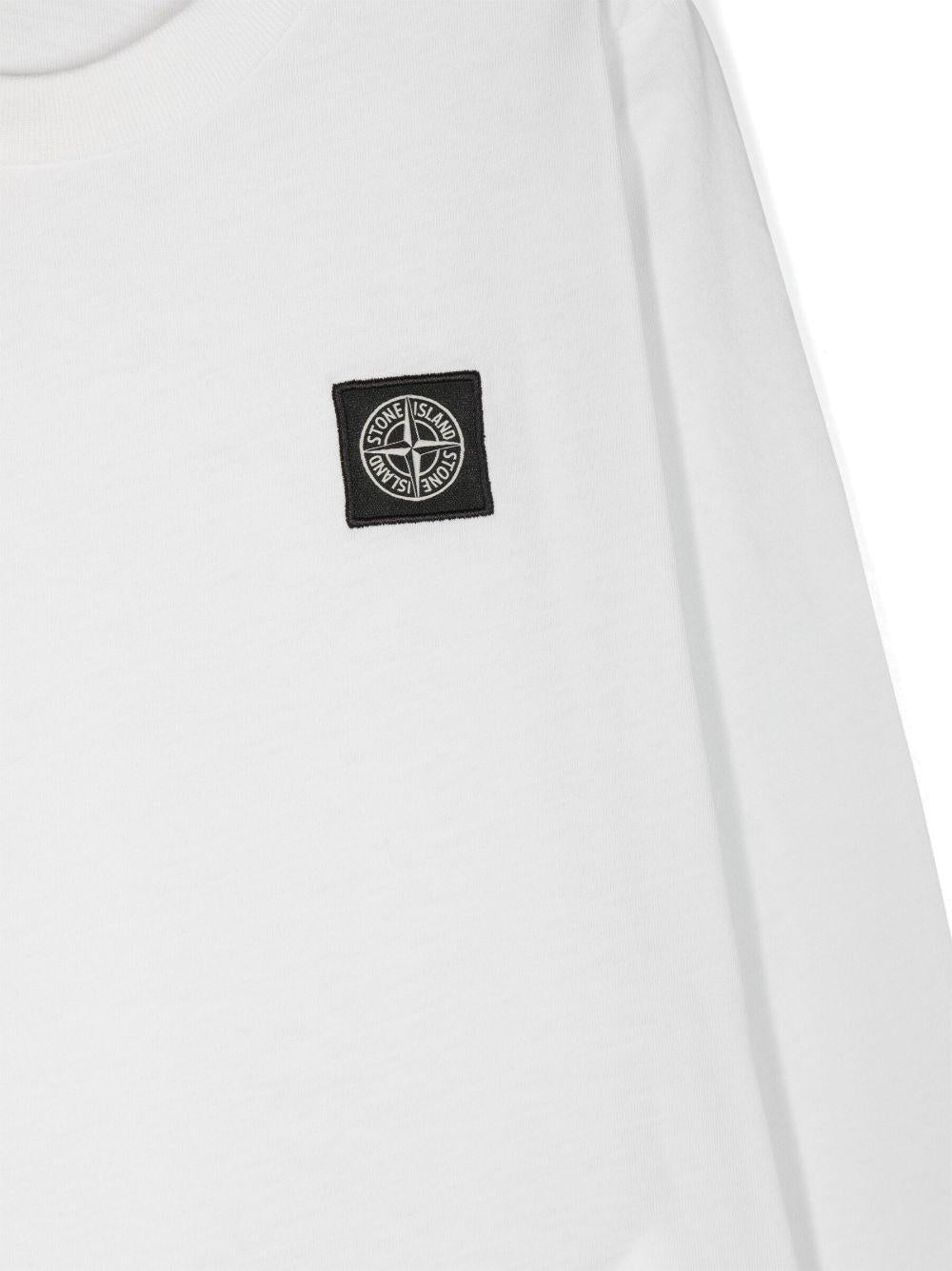 White cotton t-shirt for boys with Compass patch by Stone Island Junior.