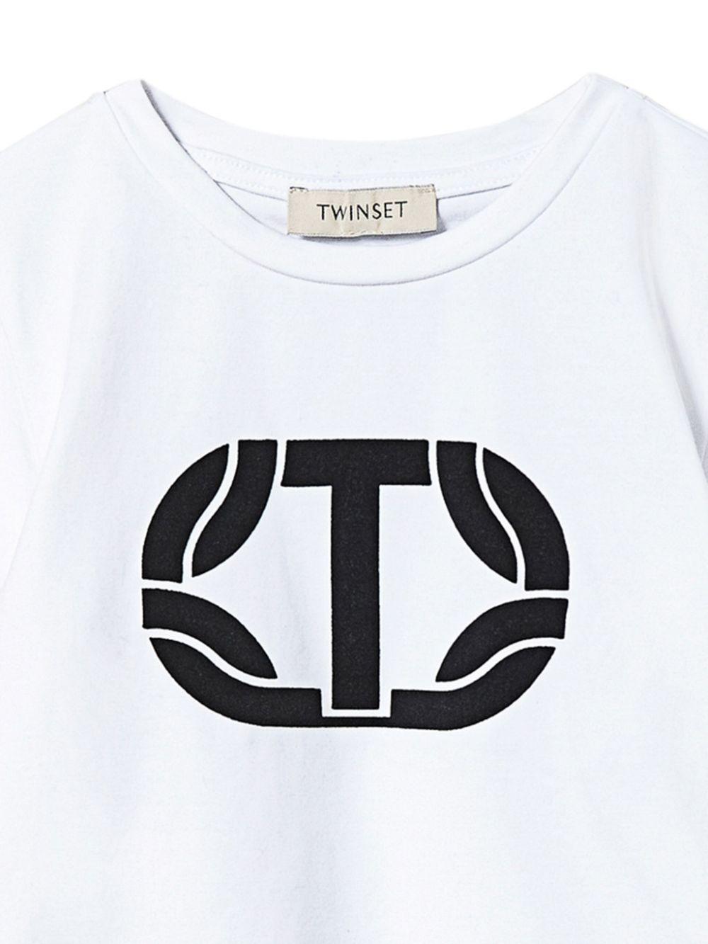 White cotton blend T-shirt for girls by Twin Set Kids.