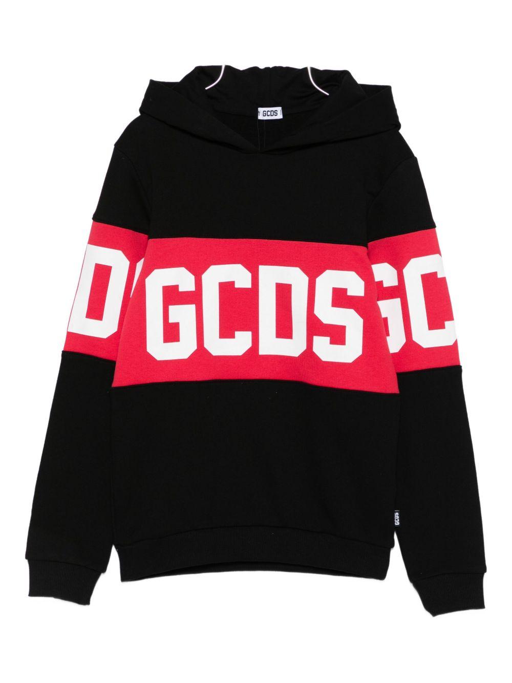 Felpa in cotone nero/rosa con cappuccio per bambino di Gcds Kids.