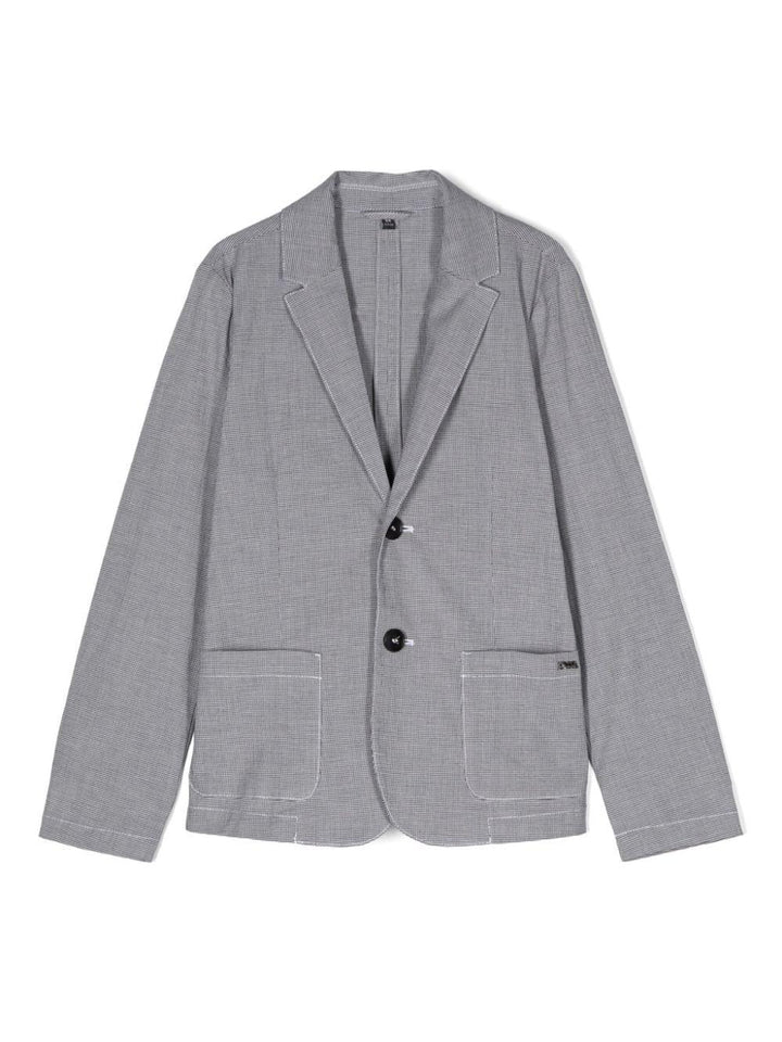 Blue cotton blend blazer for boys with houndstooth pattern by Emporio Armani Kids.
