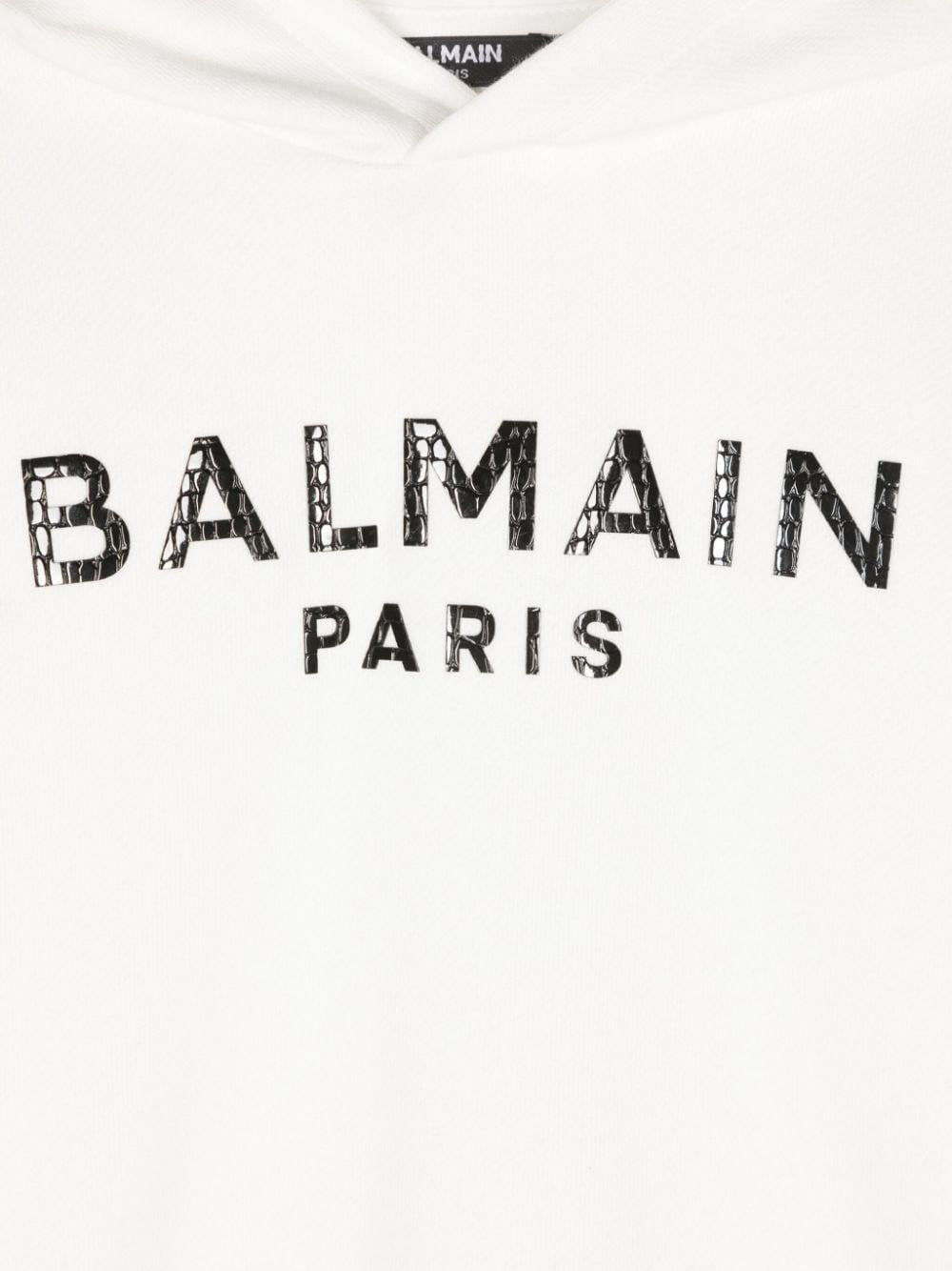 White cotton jersey sweatshirt for boys by Balmain Kids.