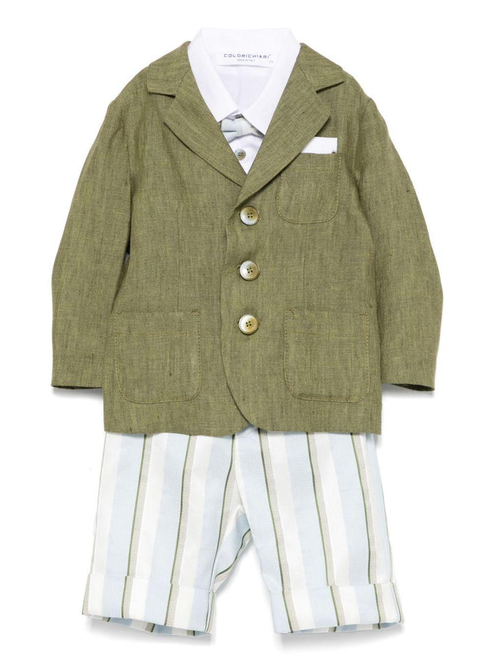 Completo verde oliva/bianco/celeste per neonato di Colorichiari Kids.