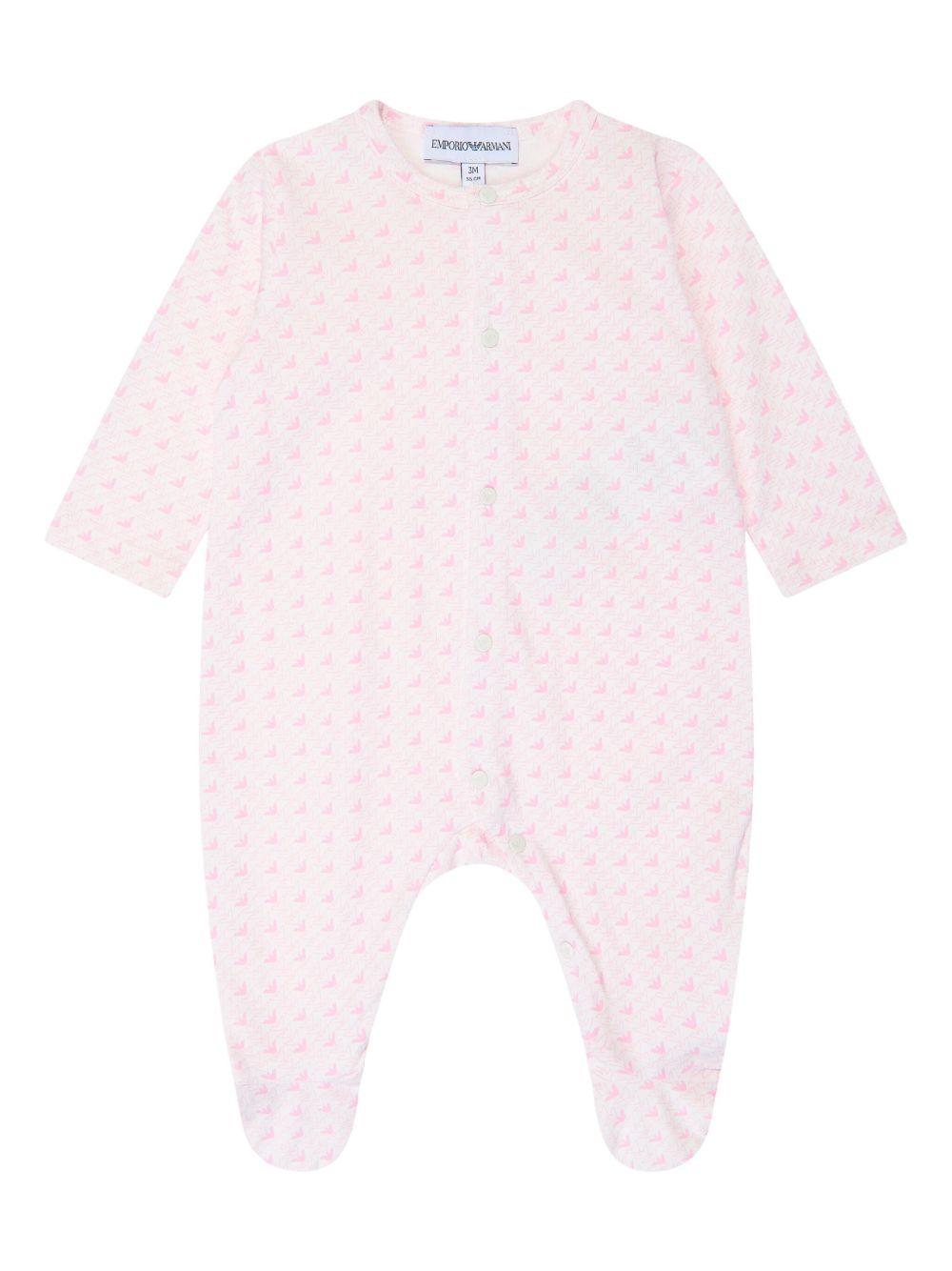 Tutina in jacquard con fantasia in cotone rosa per neonata di Emporio Armani Kids.