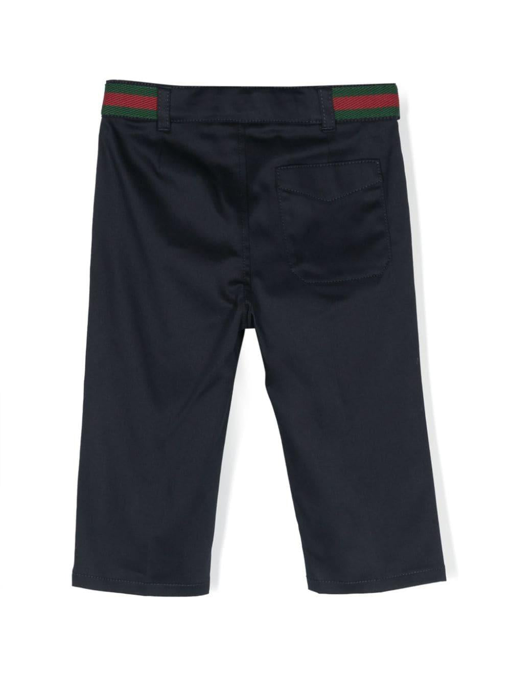 Pantalone blu navy in cotone elasticizzato per neonato con con bordo in nastro Web di Gucci Kids.
