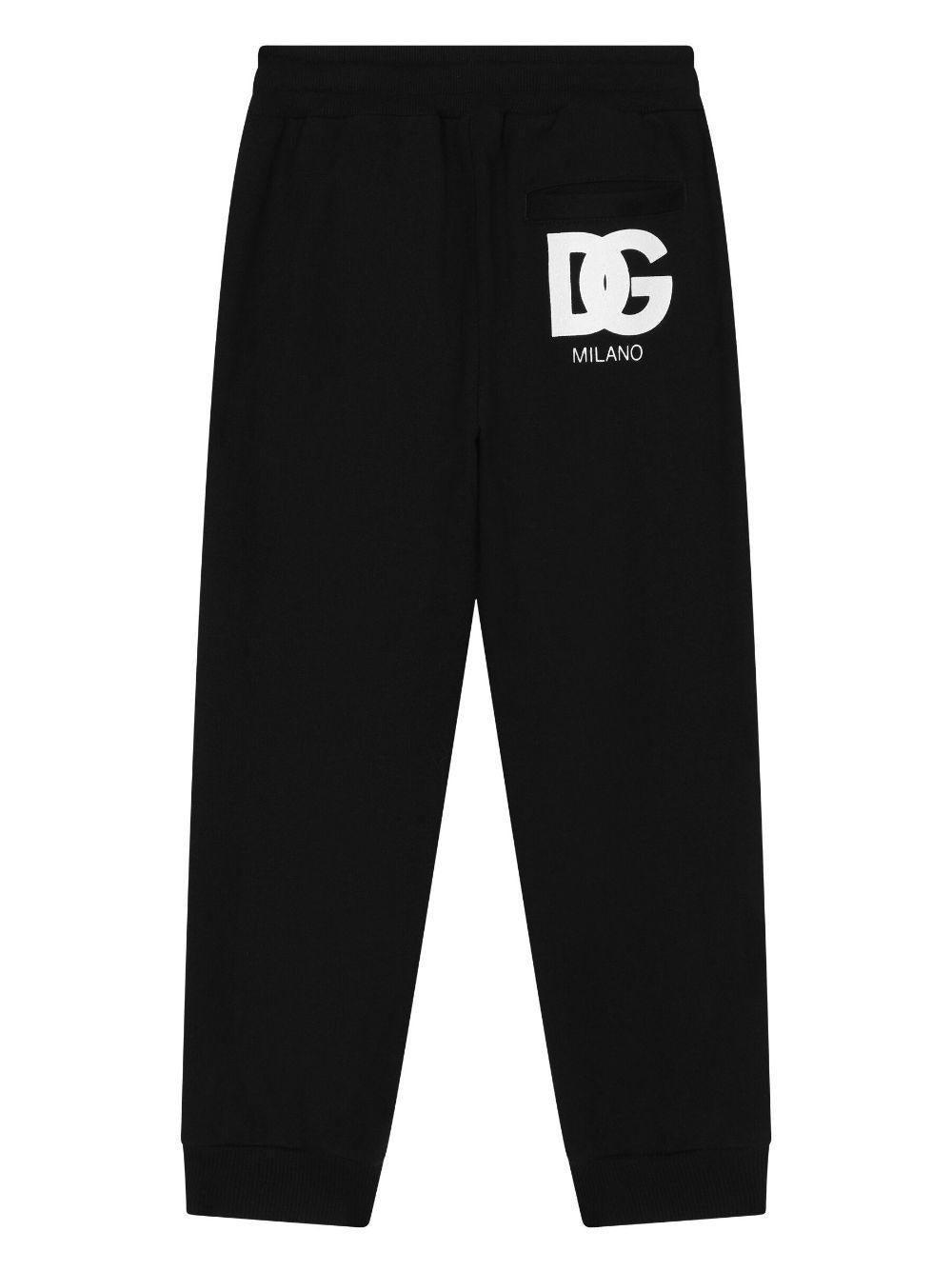 Pre-child black sports trousers in cotton with logo tape by DOLCE & GABBANA KIDS.