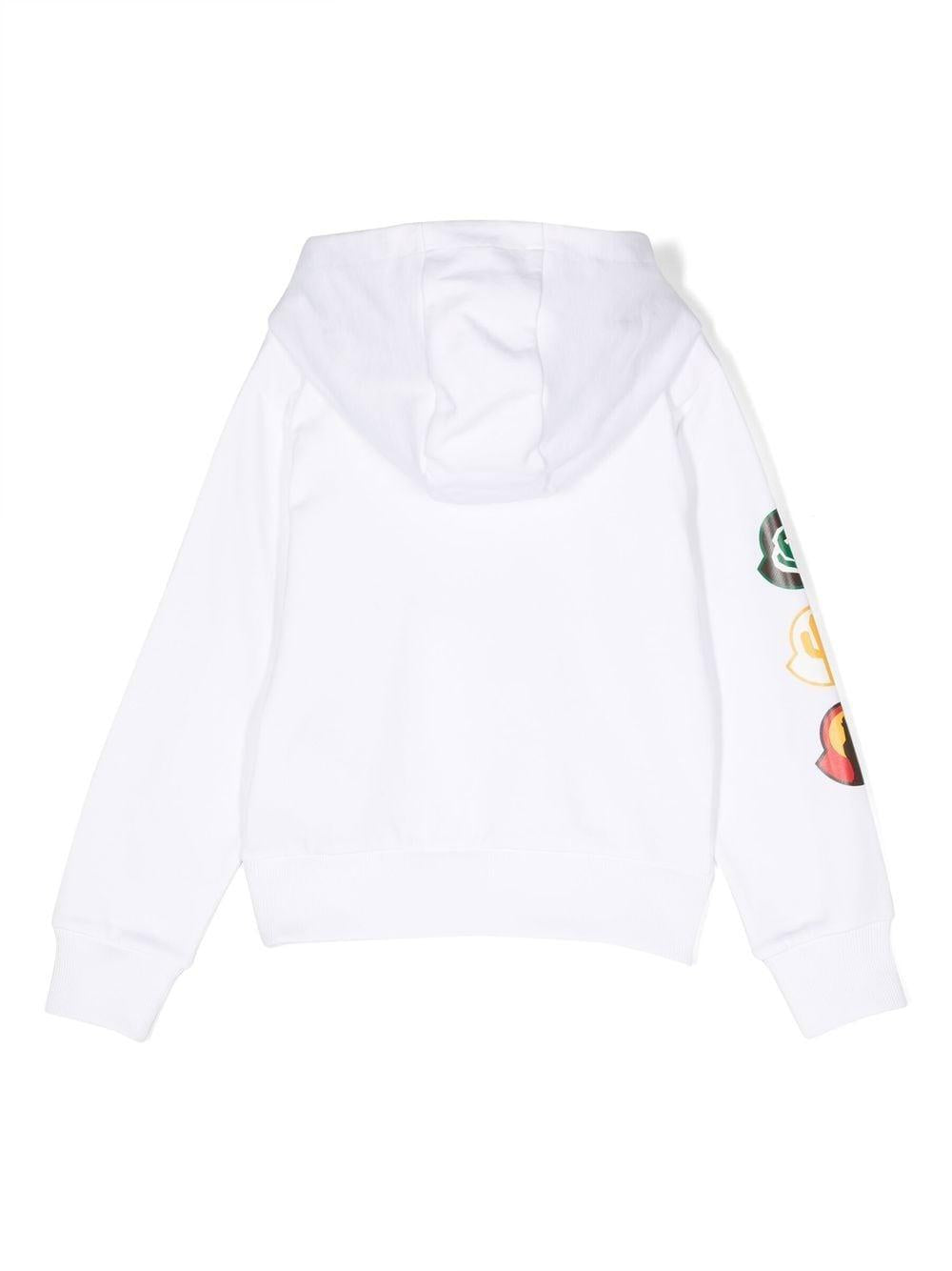 White long-sleeved hooded sweatshirt for boys with graphic print by Moncler Enfant in cotton.