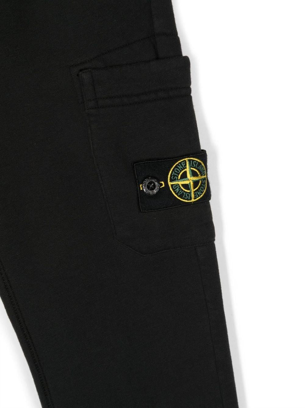 Pantalone sportivo nero in cotone per bambino con toppa Bussola di Stone Island Junior.