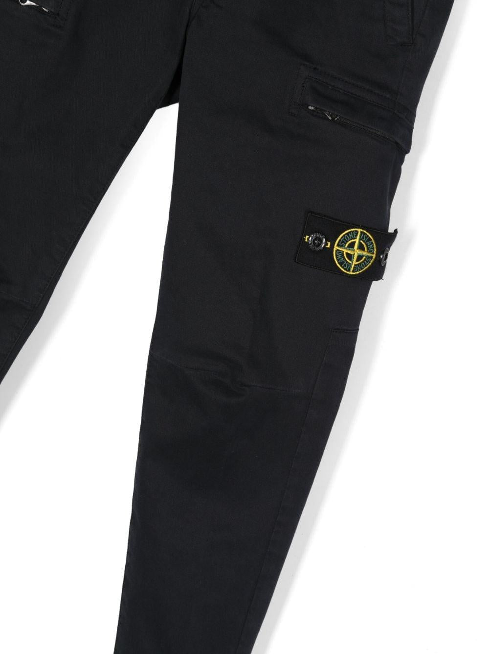 Navy blue stretch cotton trousers for boys with compass motif by Stone Island Junior.