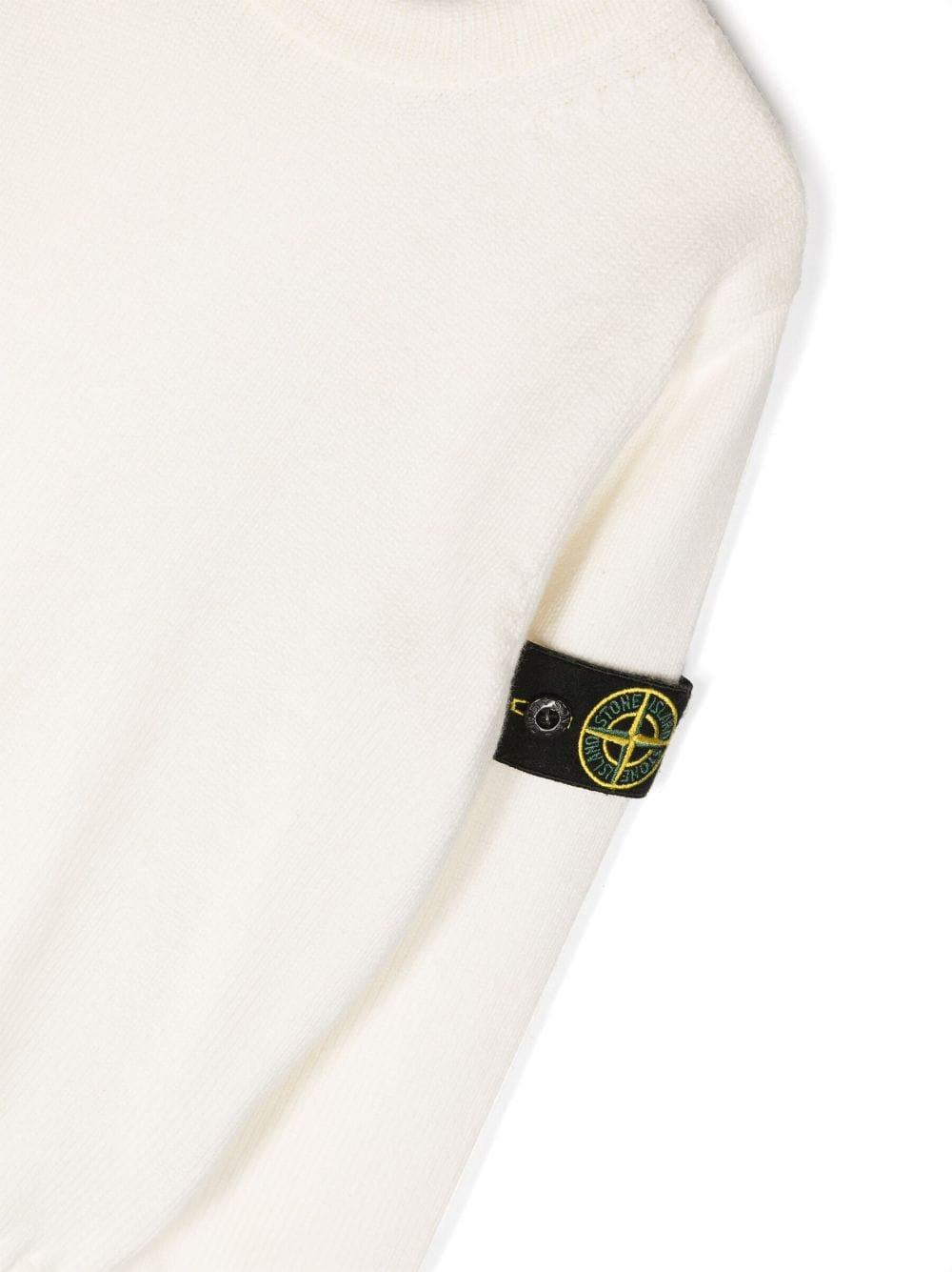 Ivory white crew-neck sweater for boys with Compass motif by Stone Island Junior in cotton blend.