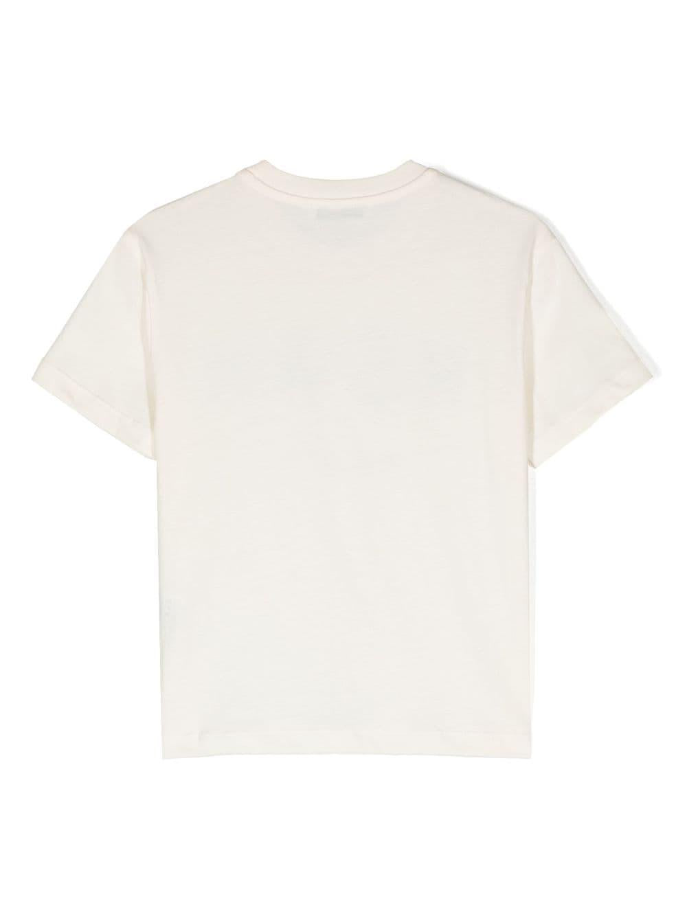 T-shirt crema in cotone per bambini con stampa logo nera sul davanti di MSGM Kids.