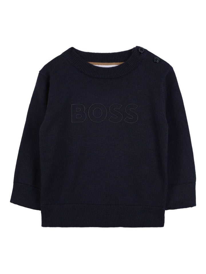 Maglione in cotone blu marine per neonato di Boss Kids.