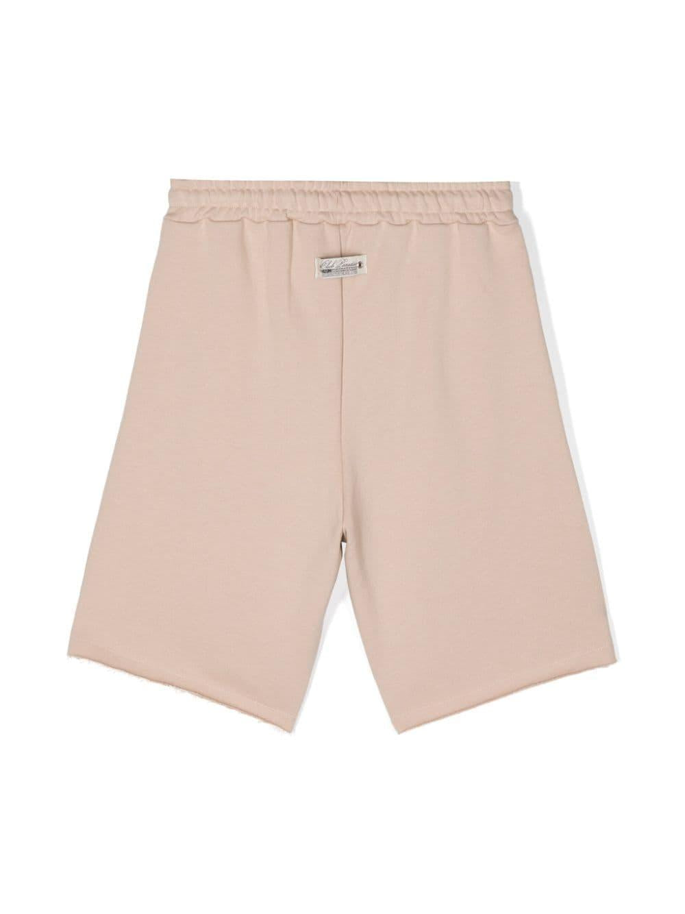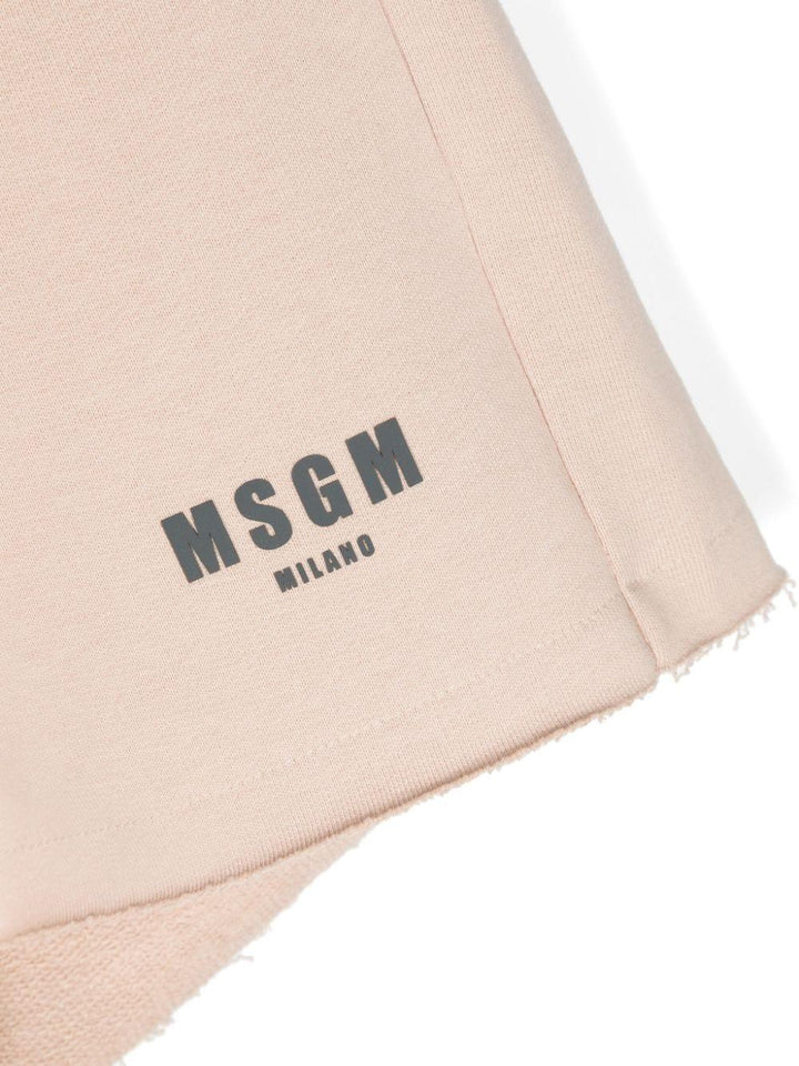 Beige cotton jersey Bermuda shorts for boys with rubberized logo on the side from the MSGM Kids collection.