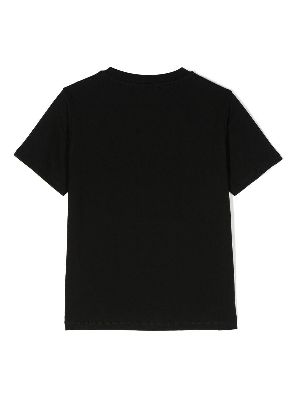 Black children's t-shirt with white logo print on the chest by Balmain Kids.