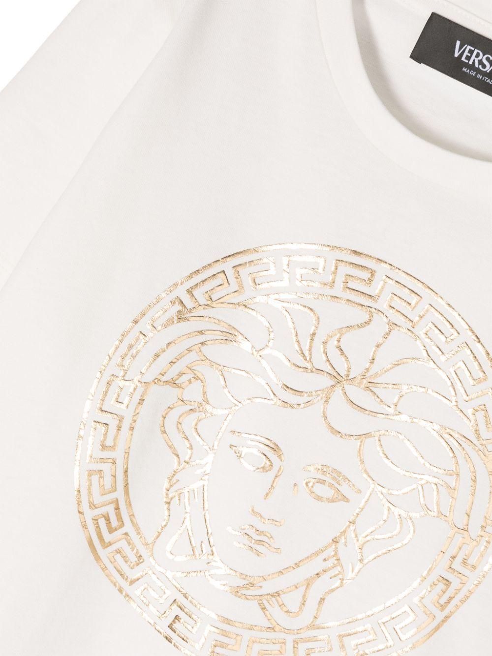 White T-shirt in soft cotton jersey for children with gold logo by Versace Kids.