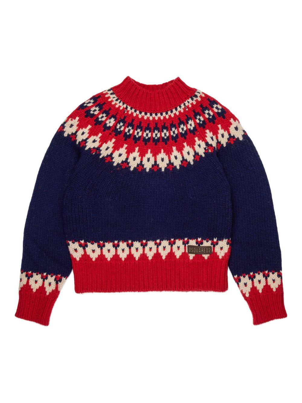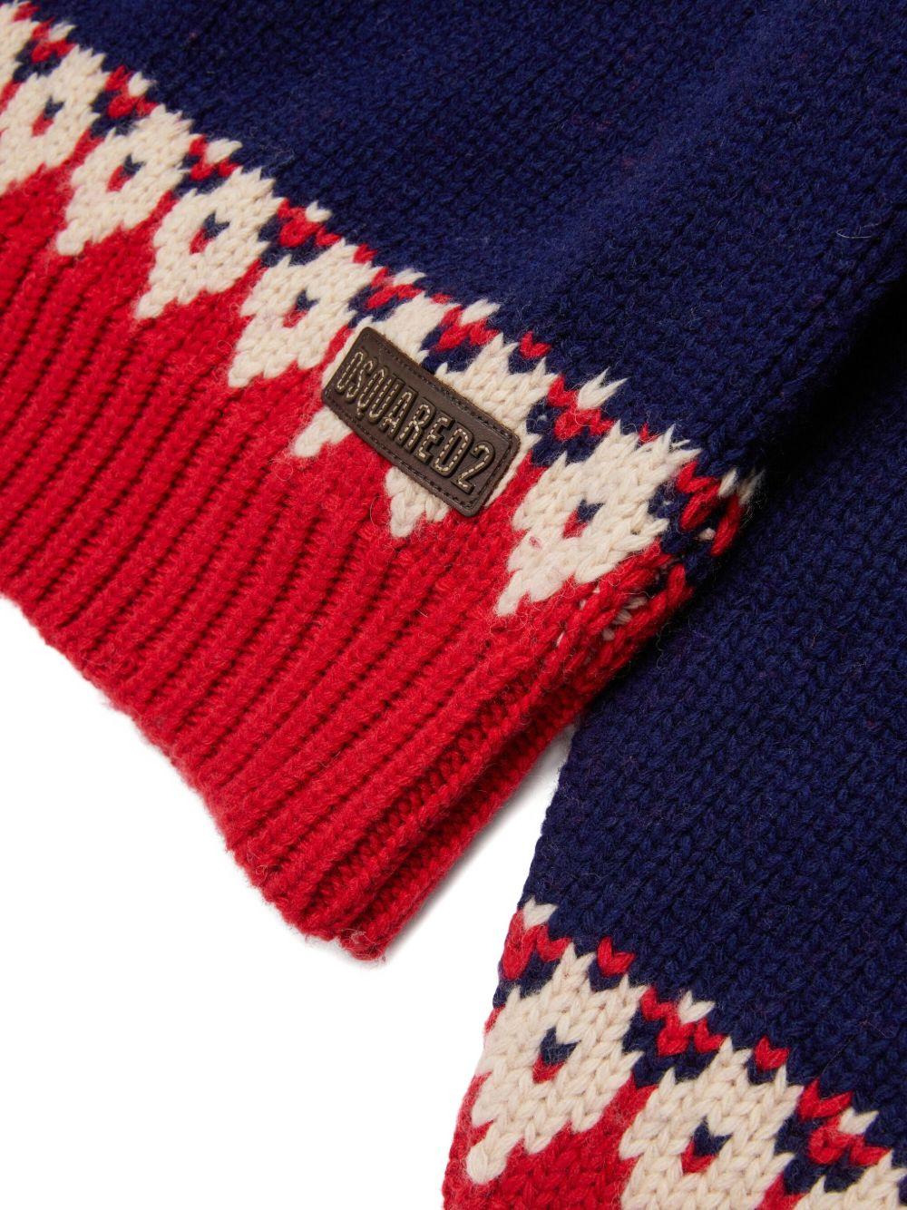 Maglione in mista lana blu navy/rosso per bambino di Dsquared2 Kids.