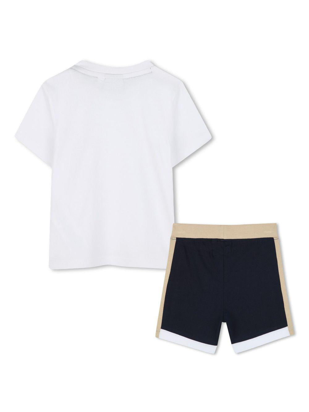 Completo sportivo in cotone bianco/blu/marrone per neonato di Boss Kids.