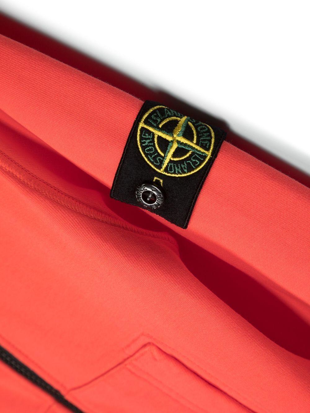 Coral cotton sweatshirt for boys with hood and zip with logo patch on the sleeve by Stone Island Junior.