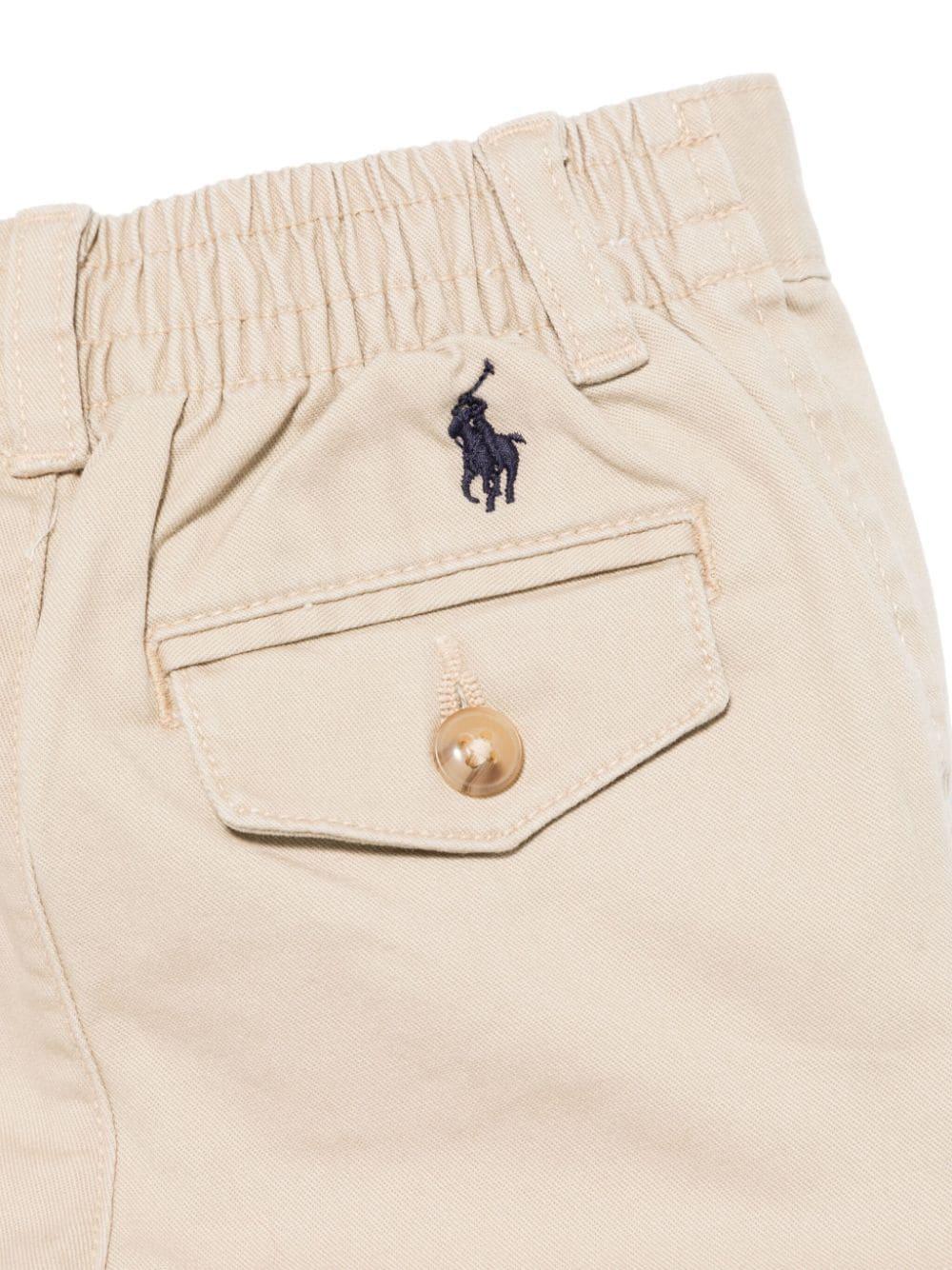- Twill trousers, front button and zip fastening, belt loops, two-sided welt pockets, elasticated waist at the back, signature Polo Pony motif, back pocket with button fastening, straight leg.