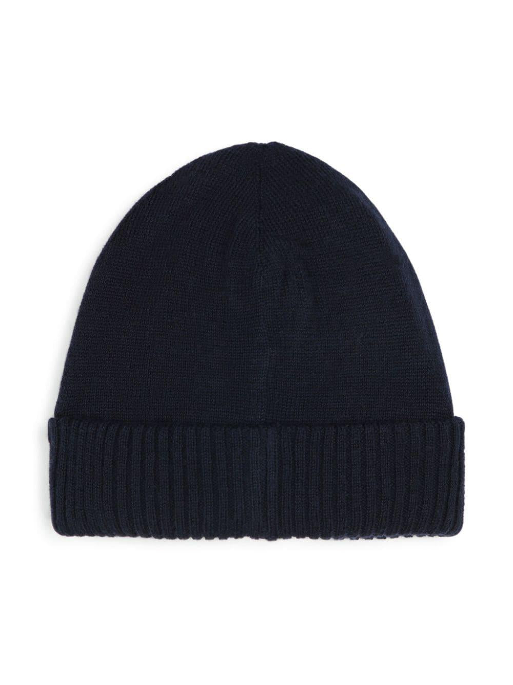 Boss Kidswear black logo knitted hat for babies.
