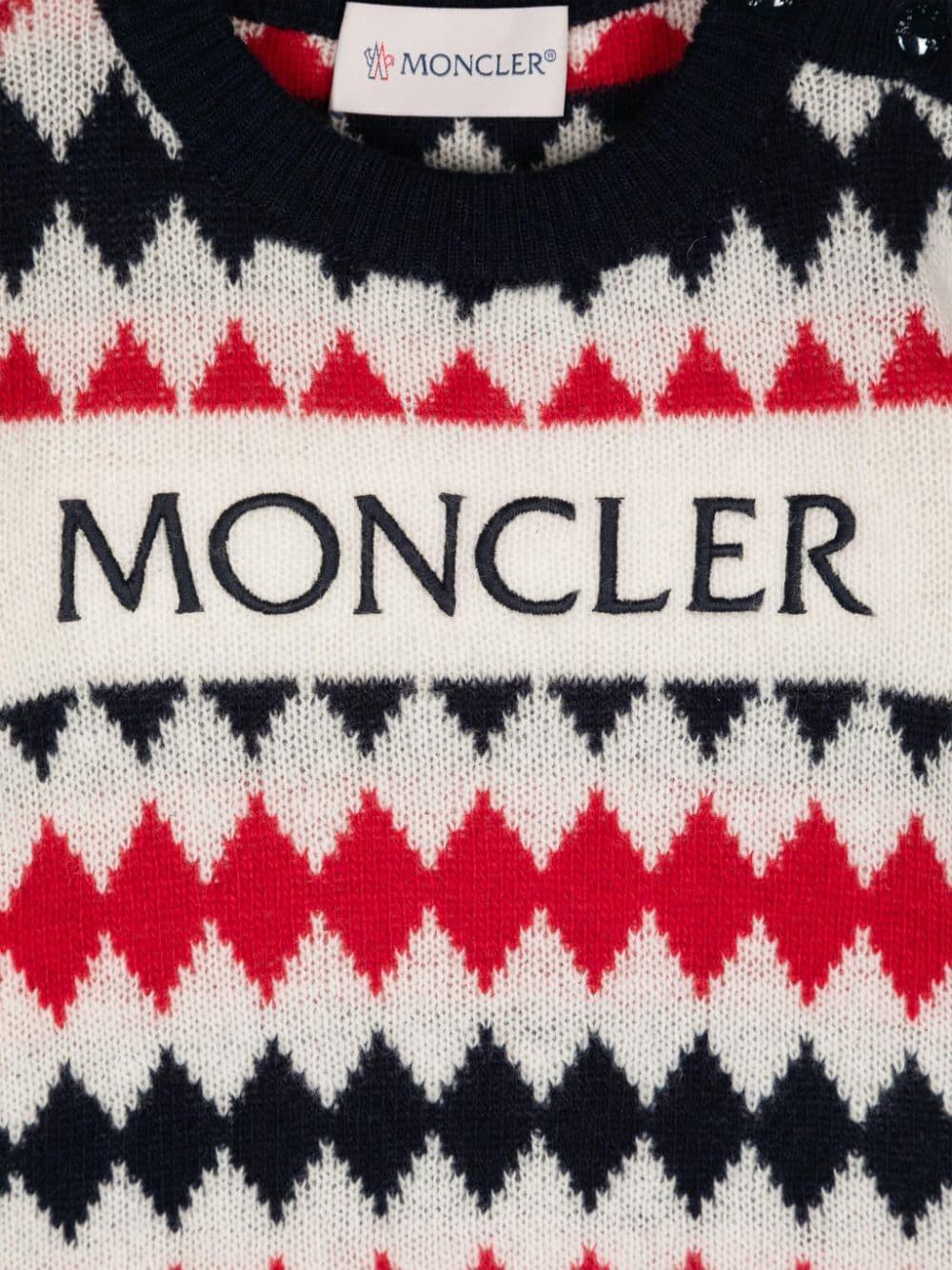 Red/white/blue virgin wool sweater for baby boys with logo by Moncler Kids.