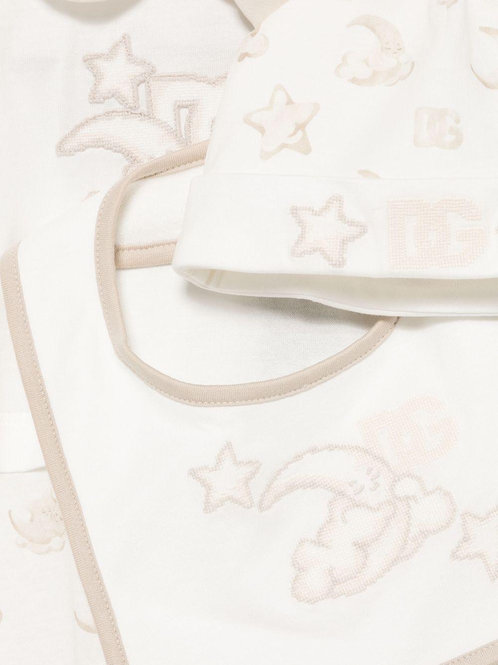 Light beige cotton baby romper by Dolce & Gabbana Kids.