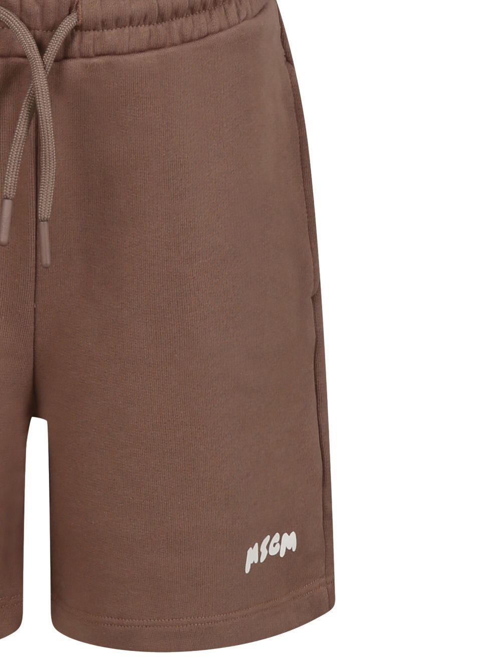 Light brown cotton Bermuda shorts for boys by Msgm Kids.