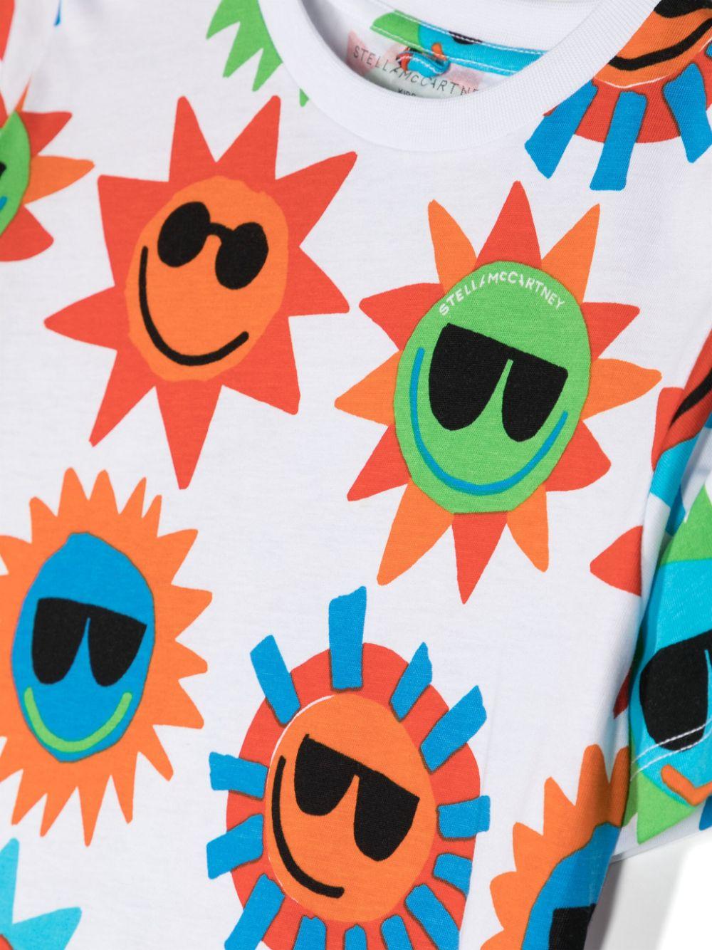 White light cotton jersey t-shirt for boys with multicolored Sunshine print from the Stella McCartney Kids collection.