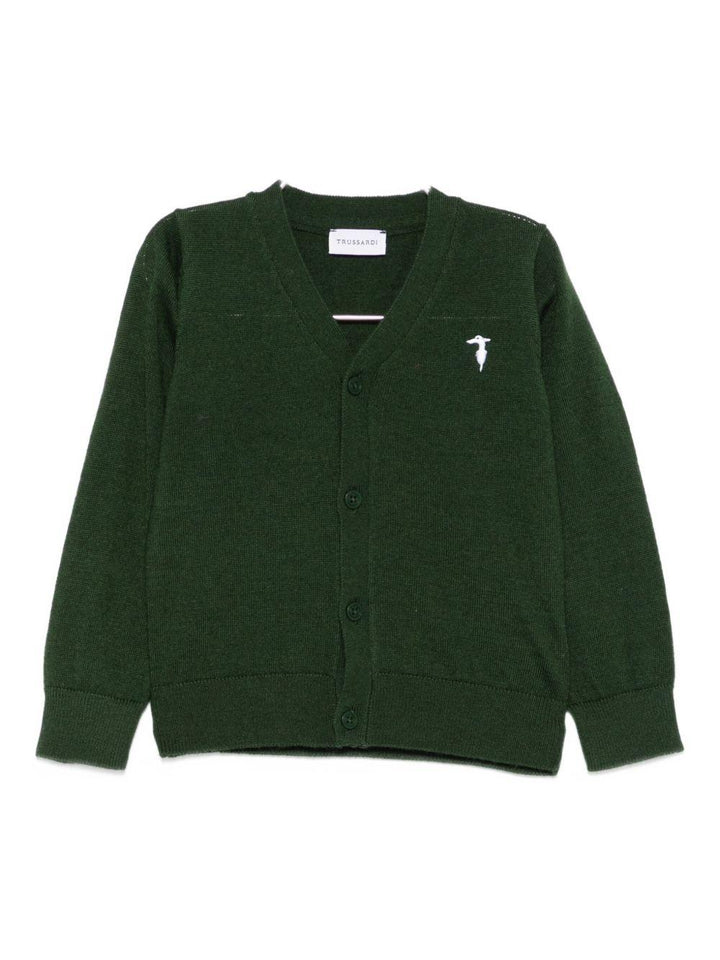 Cardigan verde scuro per neonato di Trussardi Kids.