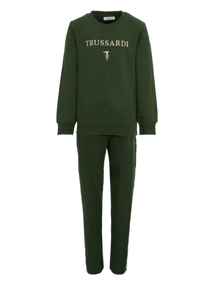 Completo sportivo in misto cotone verde per bambino di Trussardi Kids.