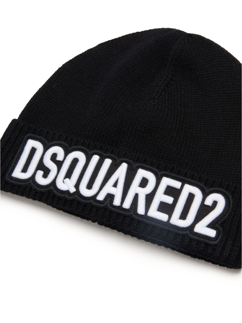 Black/white wool-cotton blend knitted hat for boys by Dsquared2 Kids.