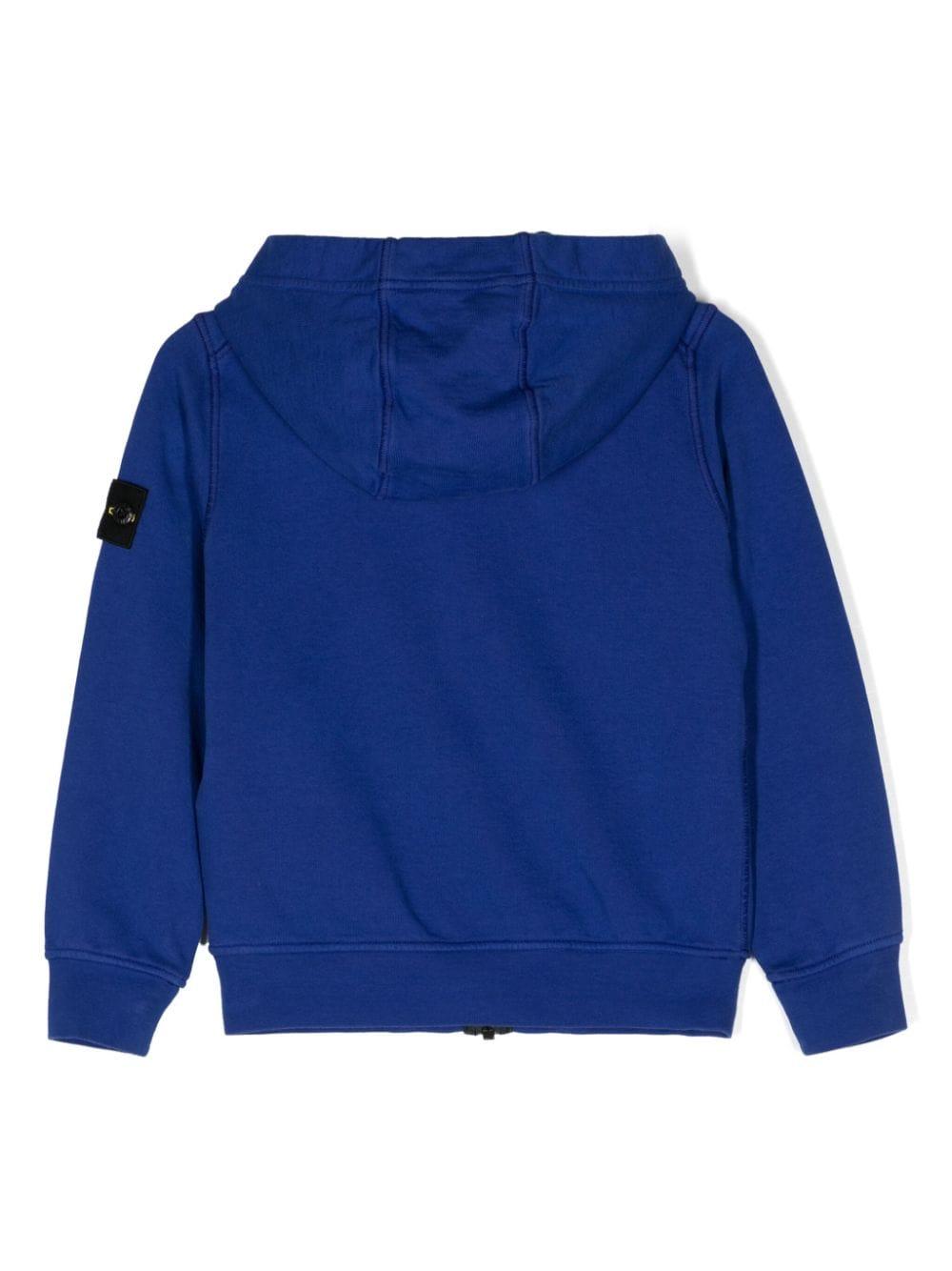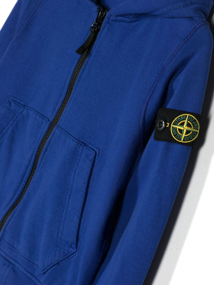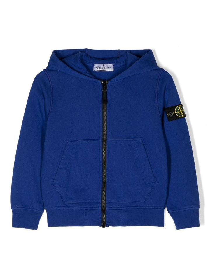 Electric blue cotton jersey sweatshirt for boys with logo on the sleeve by Stone Island Junior.