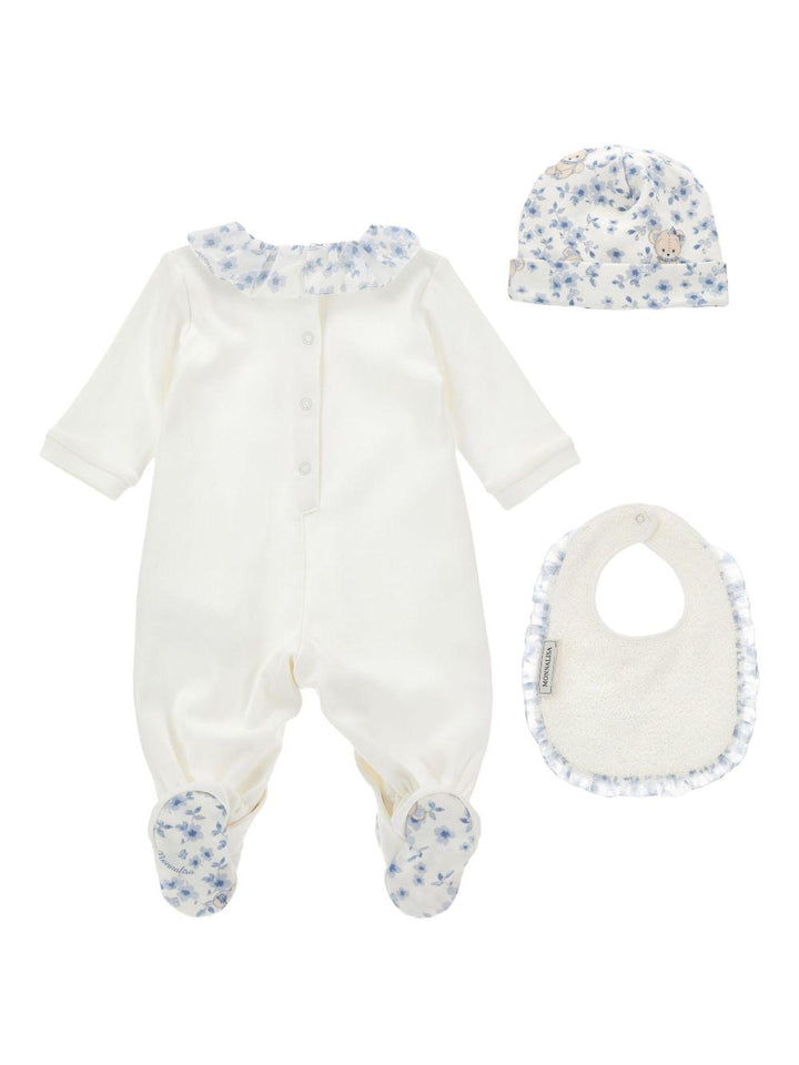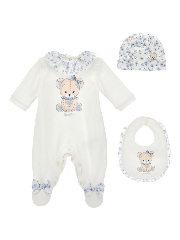 Tutina in cotone bianco/blu per neonata di Monnalisa Kids.